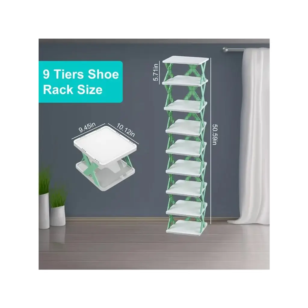 *Specifications*:? Product Type: 9 Tier Shoe RackMaterial: PlasticColor Option: Orange, Green, BlueShoes Capacity: 9 PairsPer Tier Size:24x25.7x14.5cm/9.45x10.12x5.71inItem Size:24x25.7x128.5cm/9.45x10.12x50.59inItem Weight: 1589g/3.5lbsPackage Size: 28*26*18cm/11.02*10.24*7.09inPackage Weight: 1904g/4.2lbs*Package Lists*:24x Connections9x Layer Plates