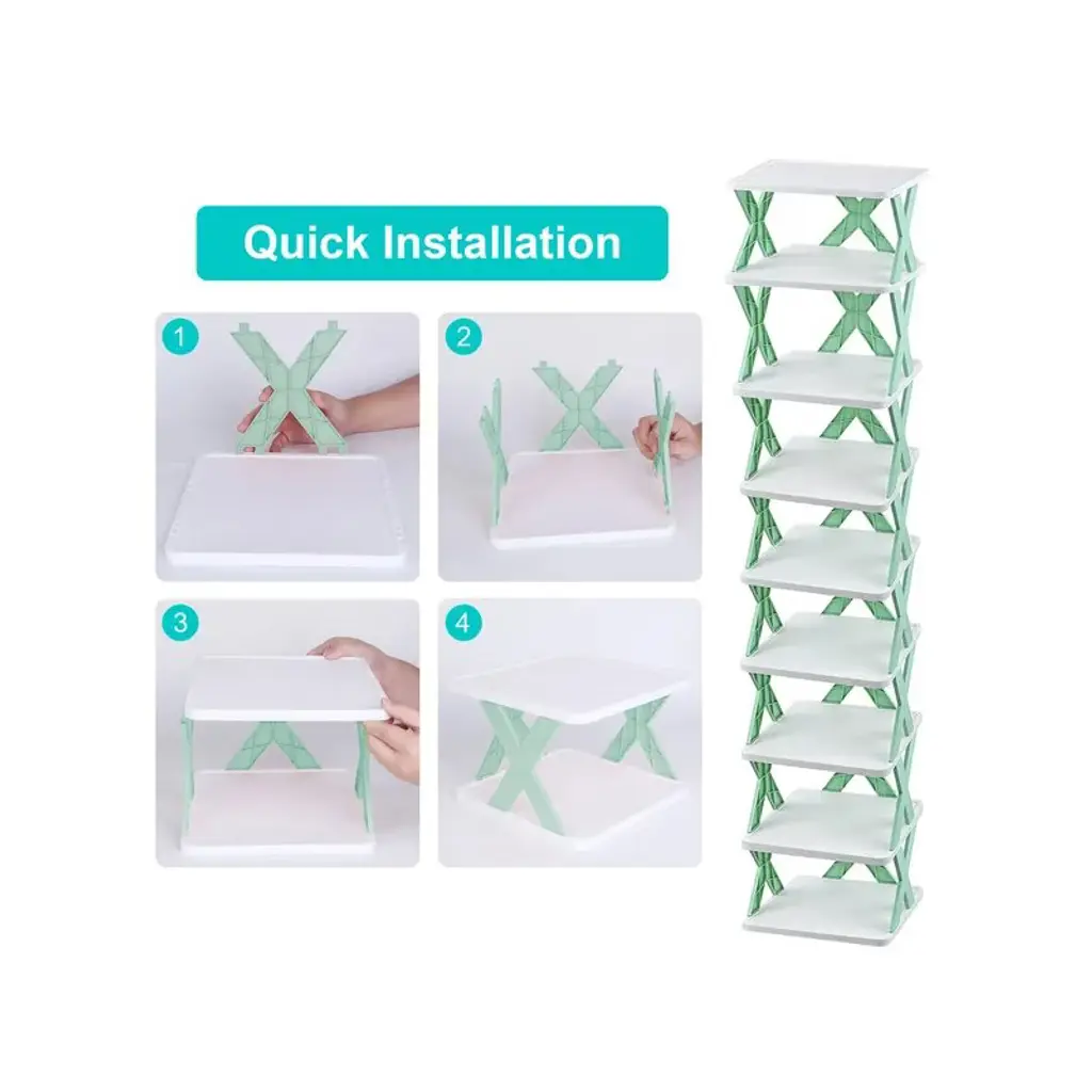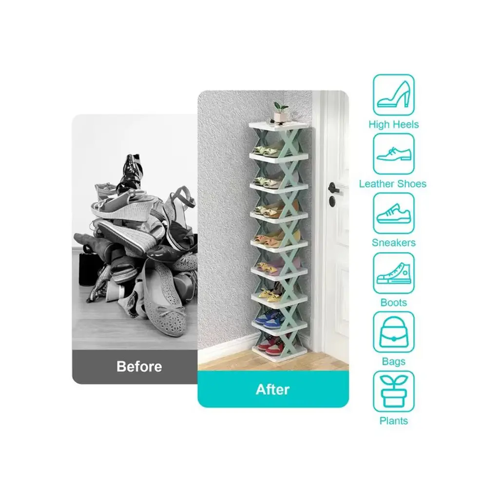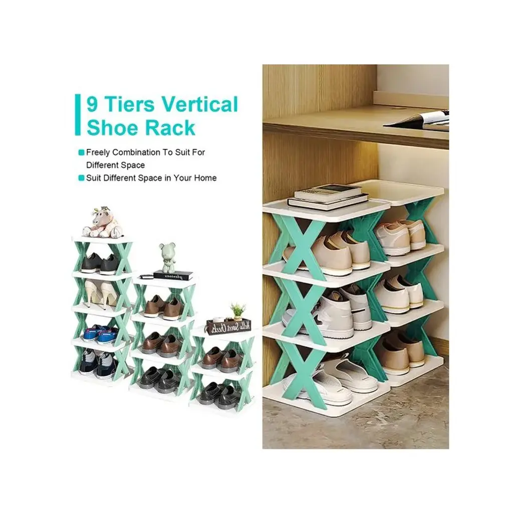 *Specifications*:? Product Type: 9 Tier Shoe RackMaterial: PlasticColor Option: Orange, Green, BlueShoes Capacity: 9 PairsPer Tier Size:24x25.7x14.5cm/9.45x10.12x5.71inItem Size:24x25.7x128.5cm/9.45x10.12x50.59inItem Weight: 1589g/3.5lbsPackage Size: 28*26*18cm/11.02*10.24*7.09inPackage Weight: 1904g/4.2lbs*Package Lists*:24x Connections9x Layer Plates