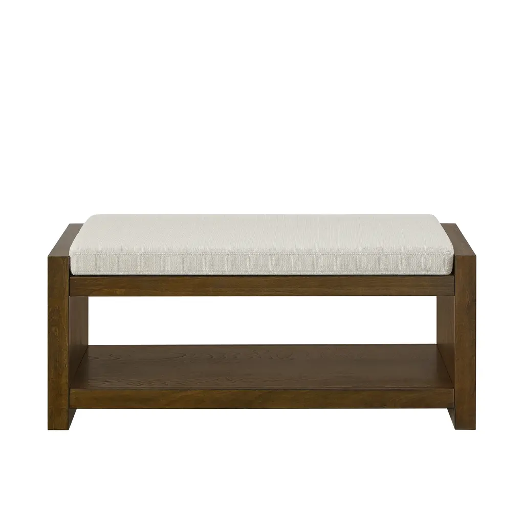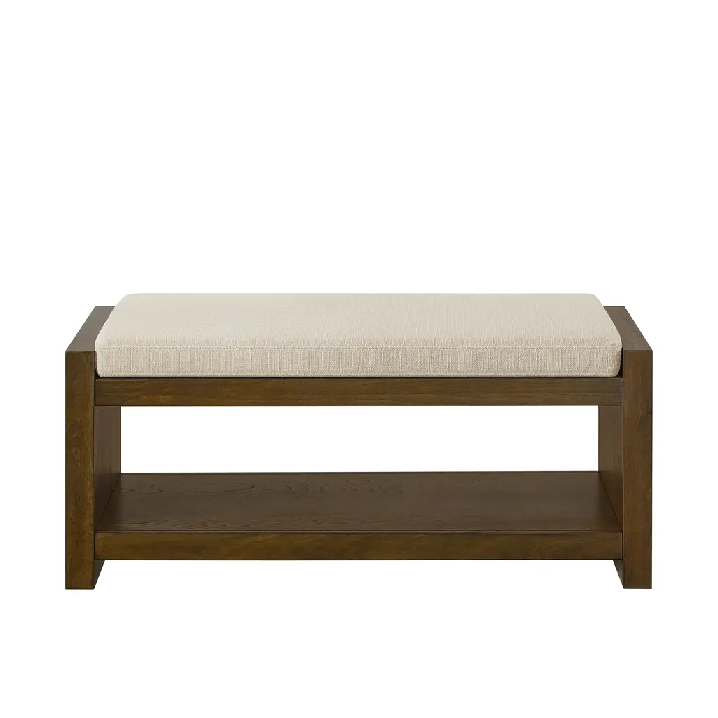 This charming transitional design seating bench effortlessly blends in and complements any décor, making it the perfect centerpiece. Ideal for placement in the living room, entryway, bedroom, or home office. Transitional design bench, blending style and functionality. Equipped with lower shelf for shoes storage, it's perfect for any entryway. The raised sides keep the cushion secure, and the removable upholstered cushion adds both comfort and practicality. Trendy and elegant, this chic modern accent bench seamlessly complements your decor with its practical design. Offering ample lower shelf storage, it combines both practicality and functionality seamlessly. Assembly: Tools included for easy assembly. Legs are stored in the bottom storage of bench.