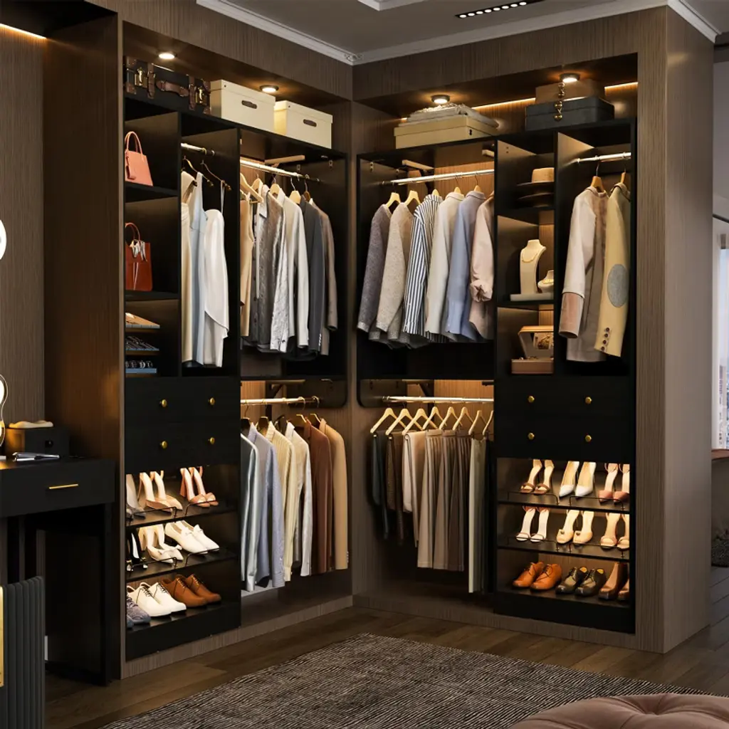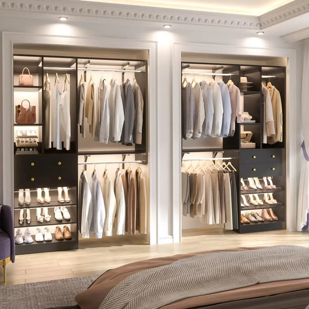 Suitable for narrow space! Our set of two closet system products can be placed freestanding. They do not need to be mounted against a wall. If you need to install anti-tipping hardware, it is explained in the last installation step of the manual. This 5FT closet organizer system will transform your normal closet into a very organized closet space with storage. The reversible design of heavy shelvings makes your closet organizer system more flexible. The 8 shelves, 6 hanging rods, 4 sliding drawers, and 6 shoe storage compartments make organizing all your clothes, shoes, and accessories easy, freeing up valuable space in your home. This closet organizer system's modern and easy-to-assemble design makes it a solid choice for any home organization project.