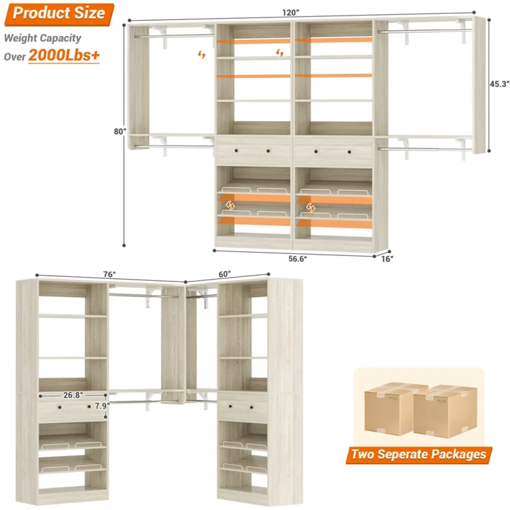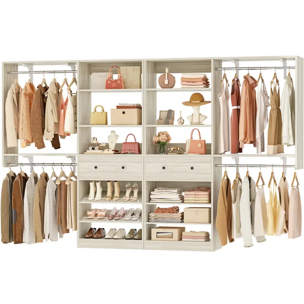 Aheaplus Set Of 2 Closet Storage Organizer With Hanging Rods And Drawers, Walk-in Closet System With Adjustable Shelves And Shoe Rack