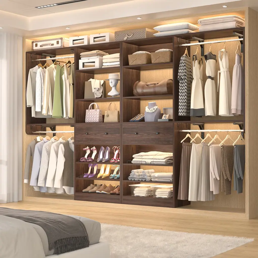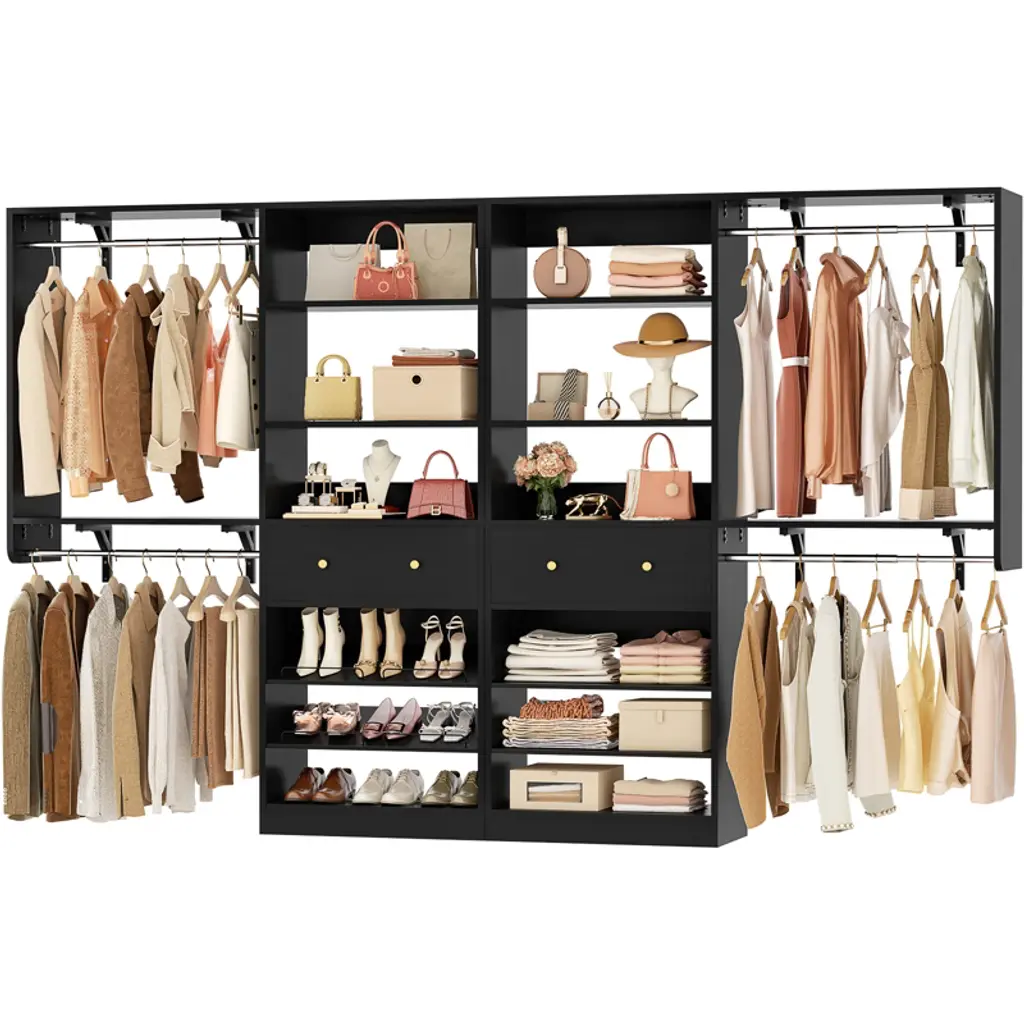 Aheaplus Set Of 2 Closet Storage Organizer With Hanging Rods And Drawers, Walk-in Closet System With Adjustable Shelves And Shoe Rack