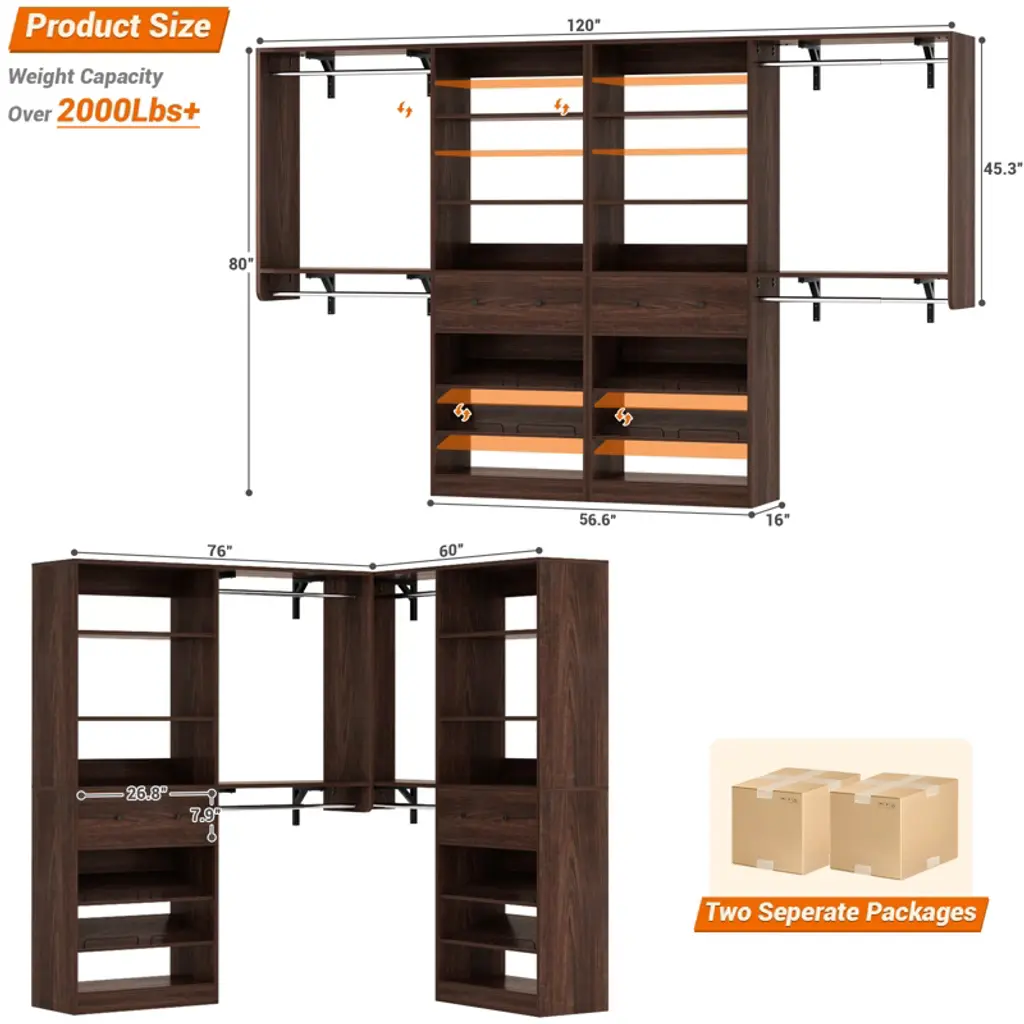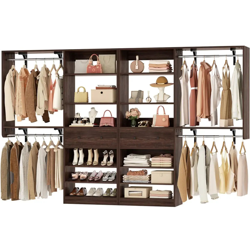 Aheaplus Set Of 2 Closet Storage Organizer With Hanging Rods And Drawers, Walk-in Closet System With Adjustable Shelves And Shoe Rack