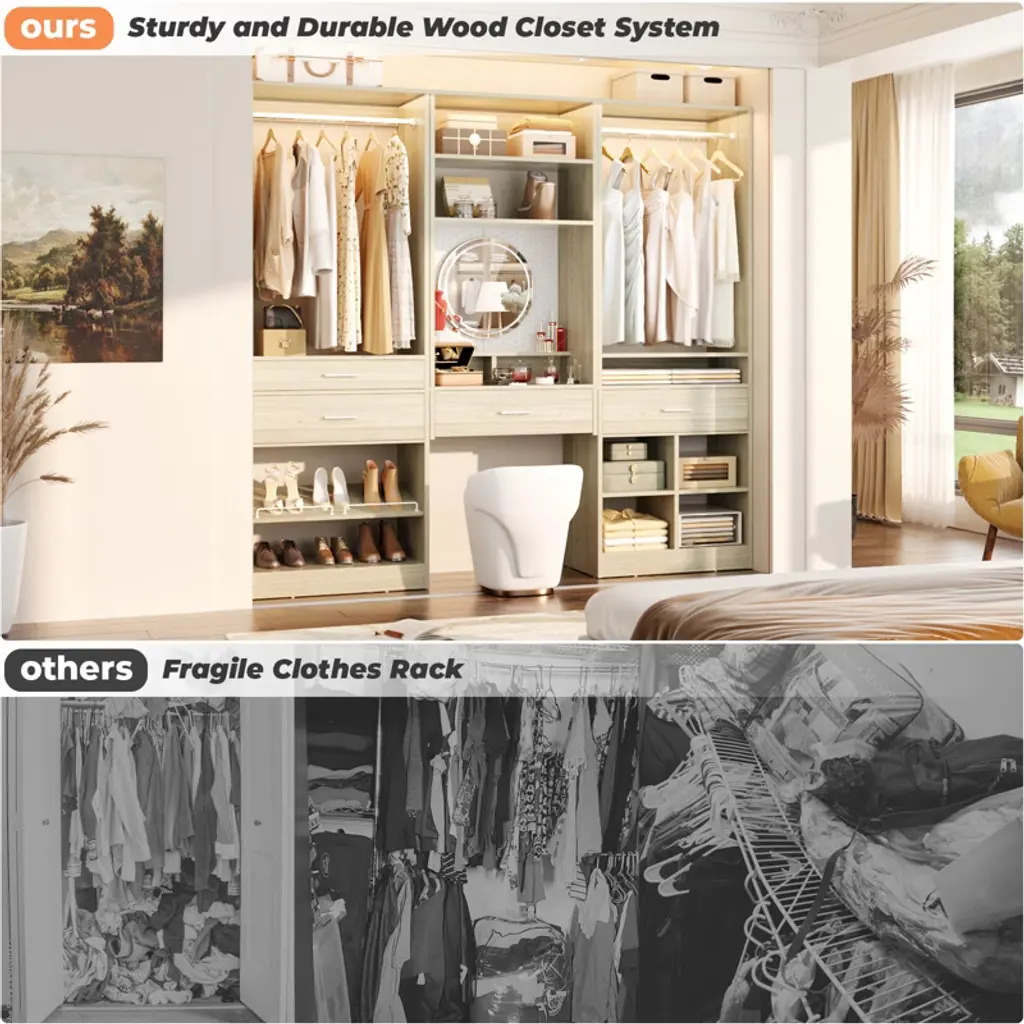 Aheaplus Set Of 3 Closet Organizer With Drawers And Hanging Rods, Walk-in Closet System Set With Shoe Rack And Storage Cubes