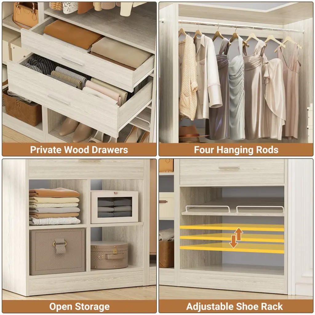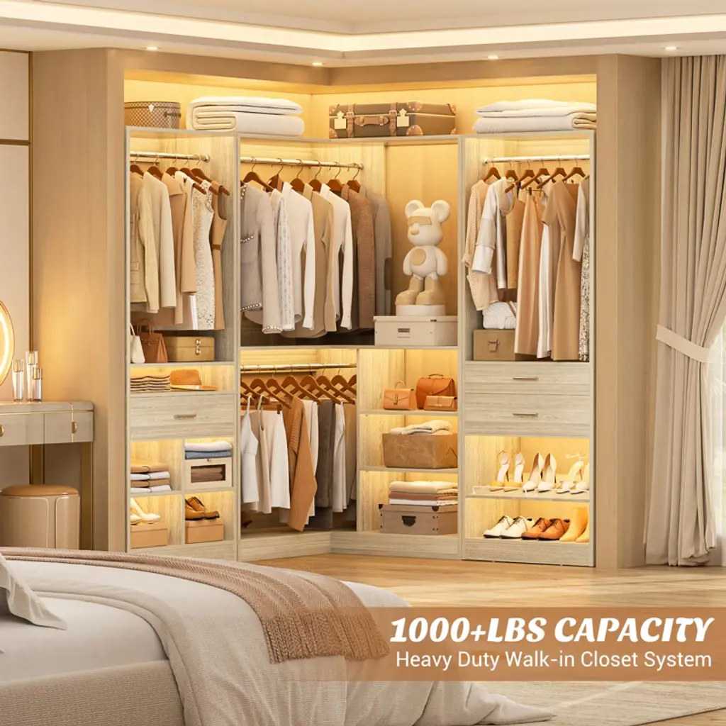Aheaplus Set Of 3 Corner Closet Organizer With Drawers And Hanging Rods, Walk-in Closet System Set With Shoe Rack And Storage Cubes