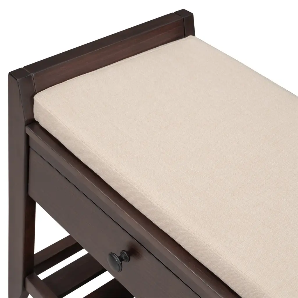 Alexandria Wood Storage Bench, Shoe Rack With Cushioned Seat And Drawers, Multipurpose Entryway Storage Bench