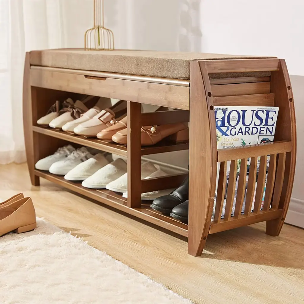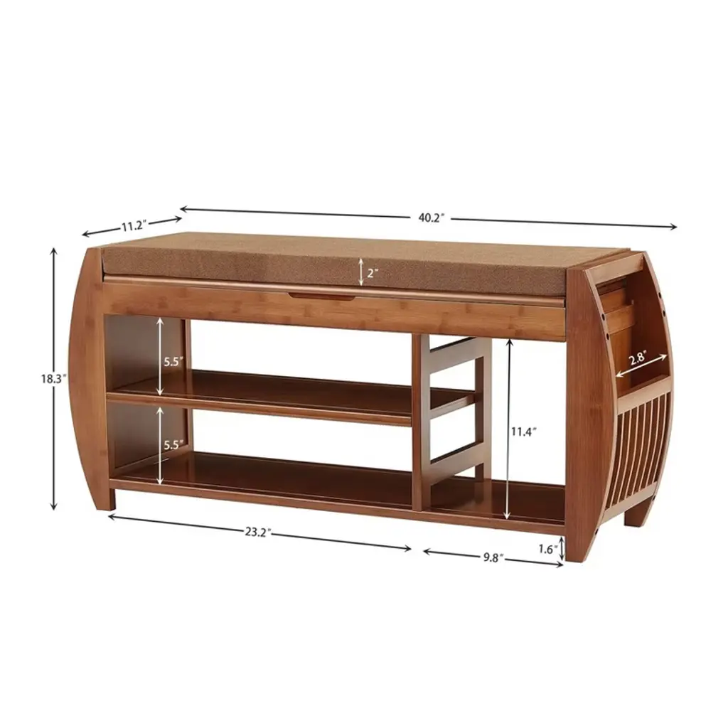 Bamboo Shoe Bench, Entry Shoe Rack With Cushion Storage, Bench With Hidden Storage Space