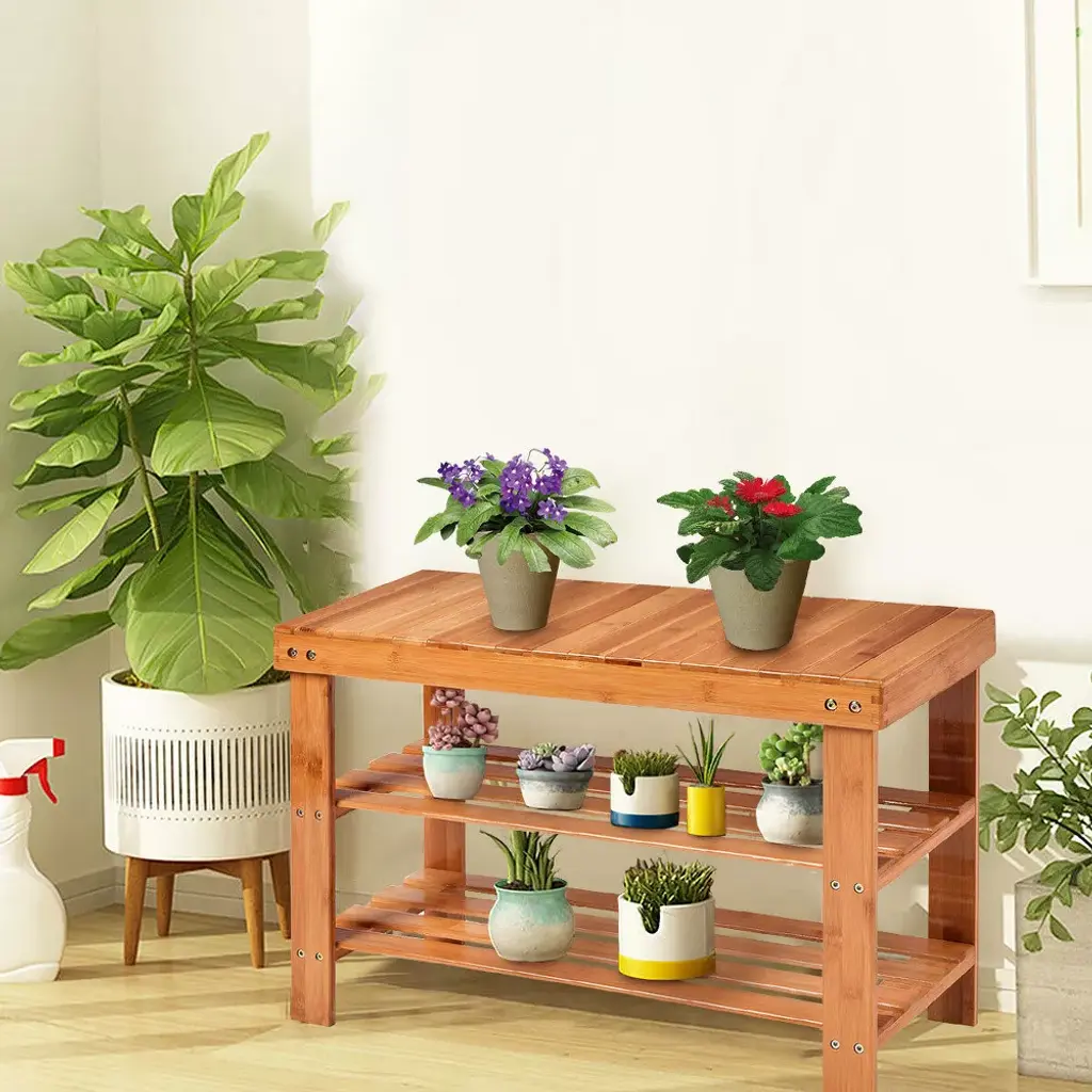 Costway 3 Tier Bamboo Shoe Rack Bench Storage Shelf Organizer Entryway Home Furni