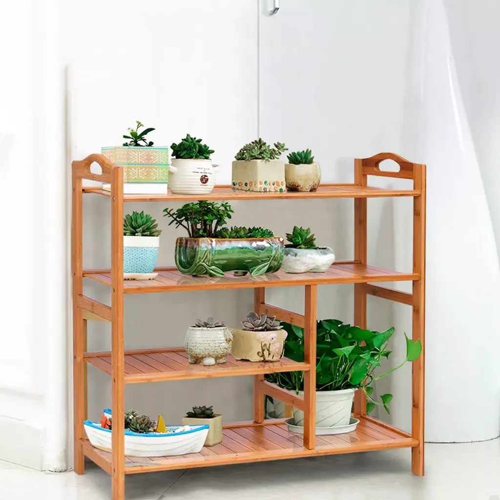 This is our 4-tier portable bamboo board boot shoe rack featuring a unique design and elegant appearance. It will be a great addition in your home. This rack is of high quality and can provide longer service life. As a shoe rack, It is suitable for different types of shoes, such as boot. It also can be a display shelf or a storage shelf to put your plants, towels etc. It will be great to add in your home. Don't hesitate to buy it now!FeaturesColor: wood color Material: bamboo Net weight: 10Lbs Dimension: 27''x 11''x 30''(Lx W x H) Please refer to the picture to more size information. Weight capacity: 44Lbs Package includes: 1 x boot shoe rack
