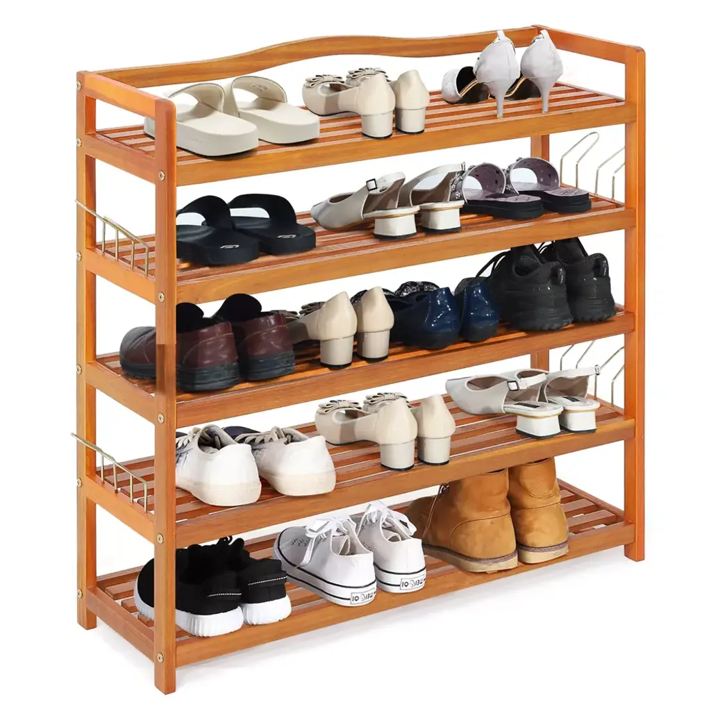 Costway 5-tier Wood Shoe Rack Freestanding Large Shoe Storage Organizer Heavy-duty