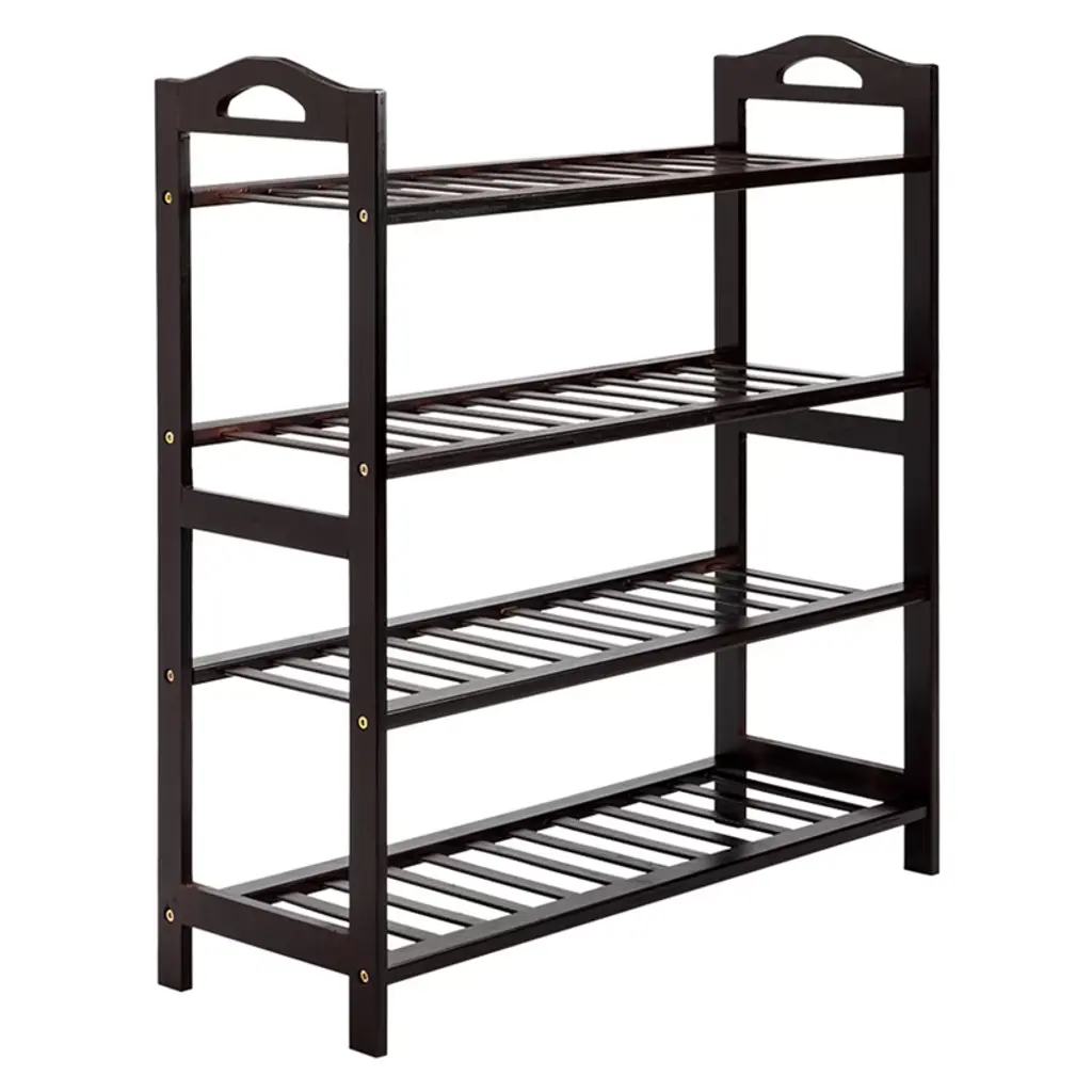 Our acacia wood shoe shelf can hold 20-30 pairs of shoes, high heels, sneakers, slippers and leather shoes. The 8 metal sided hooks for extra storage for umbrella, shoes, keys and more, enlarge the generous capacity. Made of solid acacia wood, this shoe shelf has ensured quality and each layer can bear a maximum weight of 44 lbs. We even made the slots thicker and denser. Besides a well functioned shoe shelf, this organizing unit doubles as storage rack, plant stand, and so much more. It brings into a natural element to complement your home. The oil treated surface is glossy and beautiful.FeaturesKeep all kinds of shoes orderly storage and organized in 5 tiers Acacia wood construction with a good quality that is obvious Sided hooks add hanging options for shoes, towels and more Oil treated surface is beautiful and smooth, suitable for most of the rooms Works as shoe rack, storage shelf, plant stand and more Each shelf has a maximum weight capacity of 44 lbs Easy to assemble with detailed instruction Curved buffet bar with stylish curved design to keep things from falling Color: Reddish Brown Material: Acacia Wood Product Dimension: 33” x 10.5” x 32.5” (L x W x H) Shelf Size: 10” x 31.5” (W x L). Maximum Capacity of Each Shelf: 44 lbs Net Weight: 19 lbs Package Includes: 1 x Shoe Rack 1 x Instruction 8x Hook