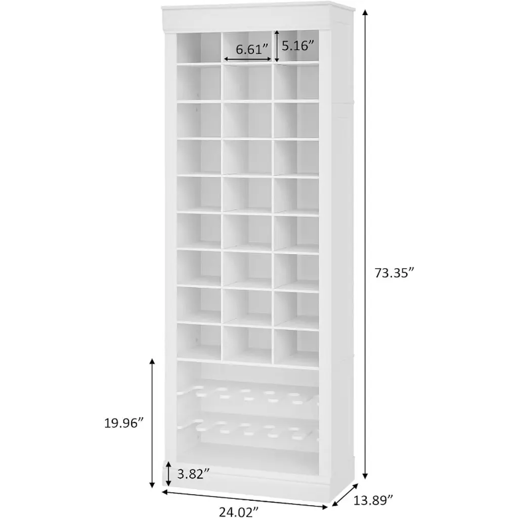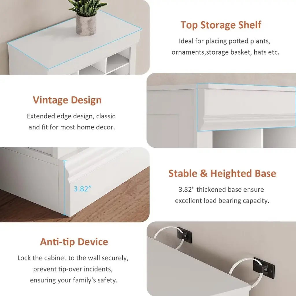Maximize your footwear organization with the COZONY 11-Tier Shoe Storage Cabinet, designed to provide comprehensive storage solutions for households with extensive shoe collections. This tall freestanding unit features multiple compartments arranged across ten tiers, creating ample space for various types of footwear while maintaining a compact footprint. The thoughtful design includes dedicated areas that accommodate taller footwear items, ensuring proper storage without bending or damage. Crafted from quality wood materials with reinforced construction, this shoe rack offers stability and durability for long-term use. The freestanding design allows flexible placement in entryways, hallways, closets, or living areas, adapting to your space requirements. With included safety features and straightforward assembly process, this storage solution combines practical functionality with reliable performance for organized home living.