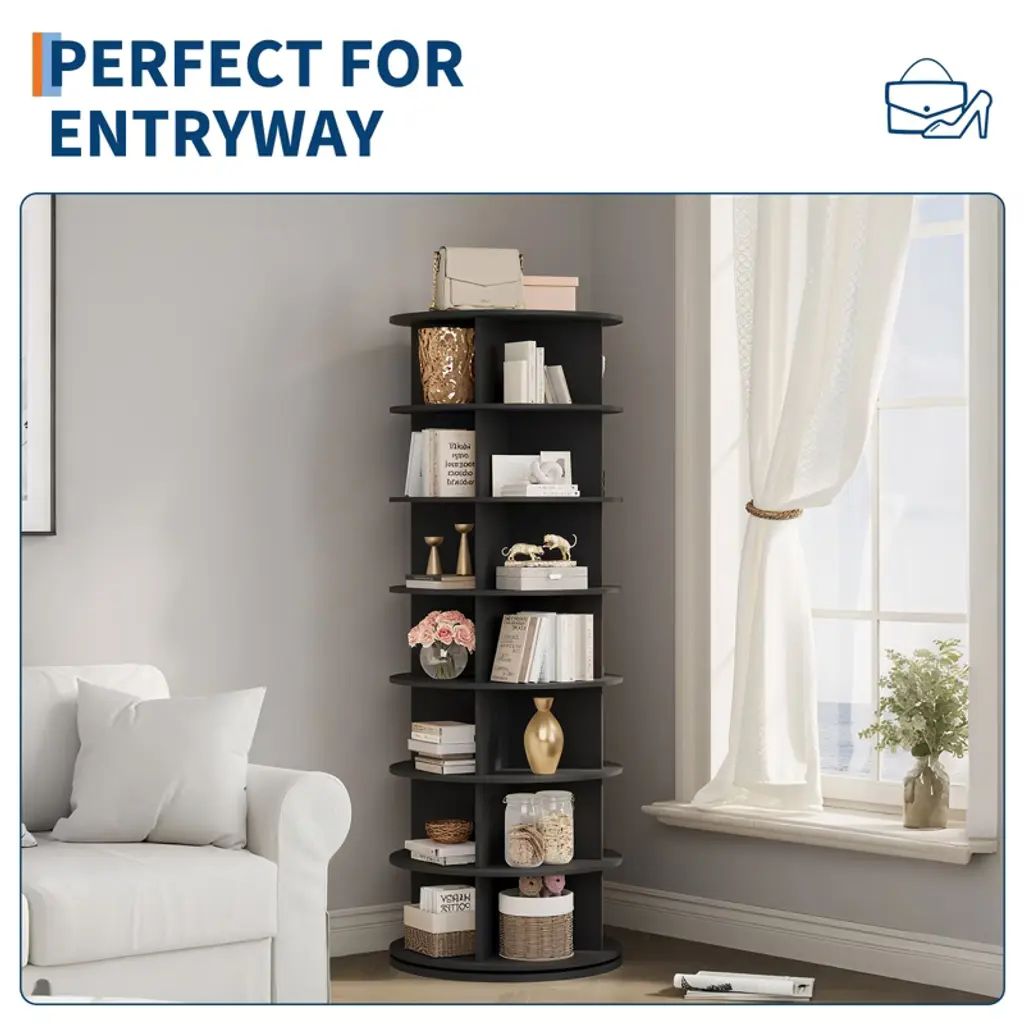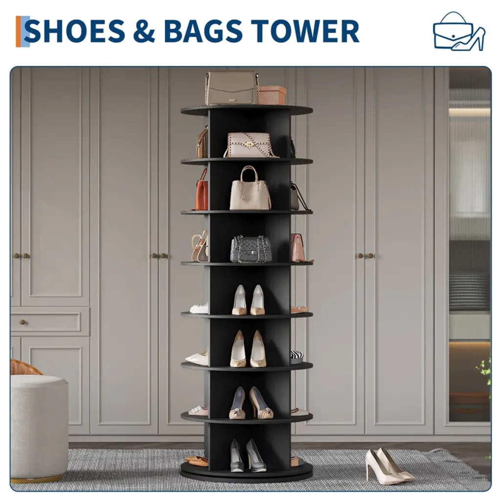 The COZONY 7-Tier Rotating Shoe Rack Tower offers a smart and space-saving way to organize your footwear collection. With a 360° free-spinning design, this tall shoe rack provides quick and easy access to 28–32 pairs of shoes while keeping your entryway, bedroom, or closet neat and clutter-free.Crafted from durable engineered wood and metal support, it’s built for stability and long-lasting use. The round tiered design also doubles as a handbag or accessory organizer, making it a versatile storage solution for modern homes. At 64 inches tall, this rotating tower maximizes vertical space while taking up minimal floor area.Perfect for apartments, small spaces, or large collections, this rack combines style, function, and convenience in one practical piece of furniture.