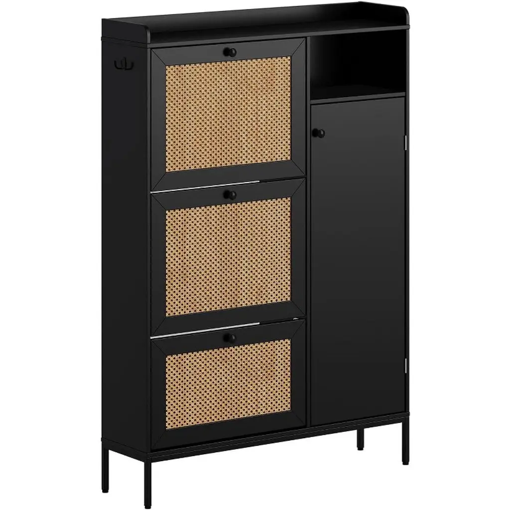 Discover intelligent footwear organization with the COZONY Flip-Drawer Shoe Cabinet Collection, designed to maximize storage while enhancing your home's aesthetic. These versatile cabinets combine the natural elegance of hand-woven rattan with practical flip-down drawers that provide concealed storage and easy access. The adjustable shelving system accommodates various footwear types from casual sneakers to taller boots, ensuring every pair has its designated space. Thoughtful details include noise-reducing mechanisms for quiet operation, integrated hooks for additional storage, and stability features that ensure safety in households with children and pets. Crafted from quality materials with reinforced construction, these freestanding units offer reliable durability while maintaining a slim profile perfect for entryways, hallways, and living areas. The straightforward assembly process makes it easy to transform your space quickly.