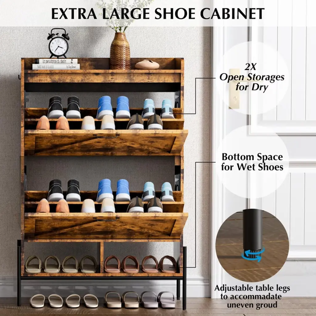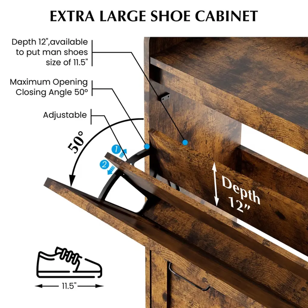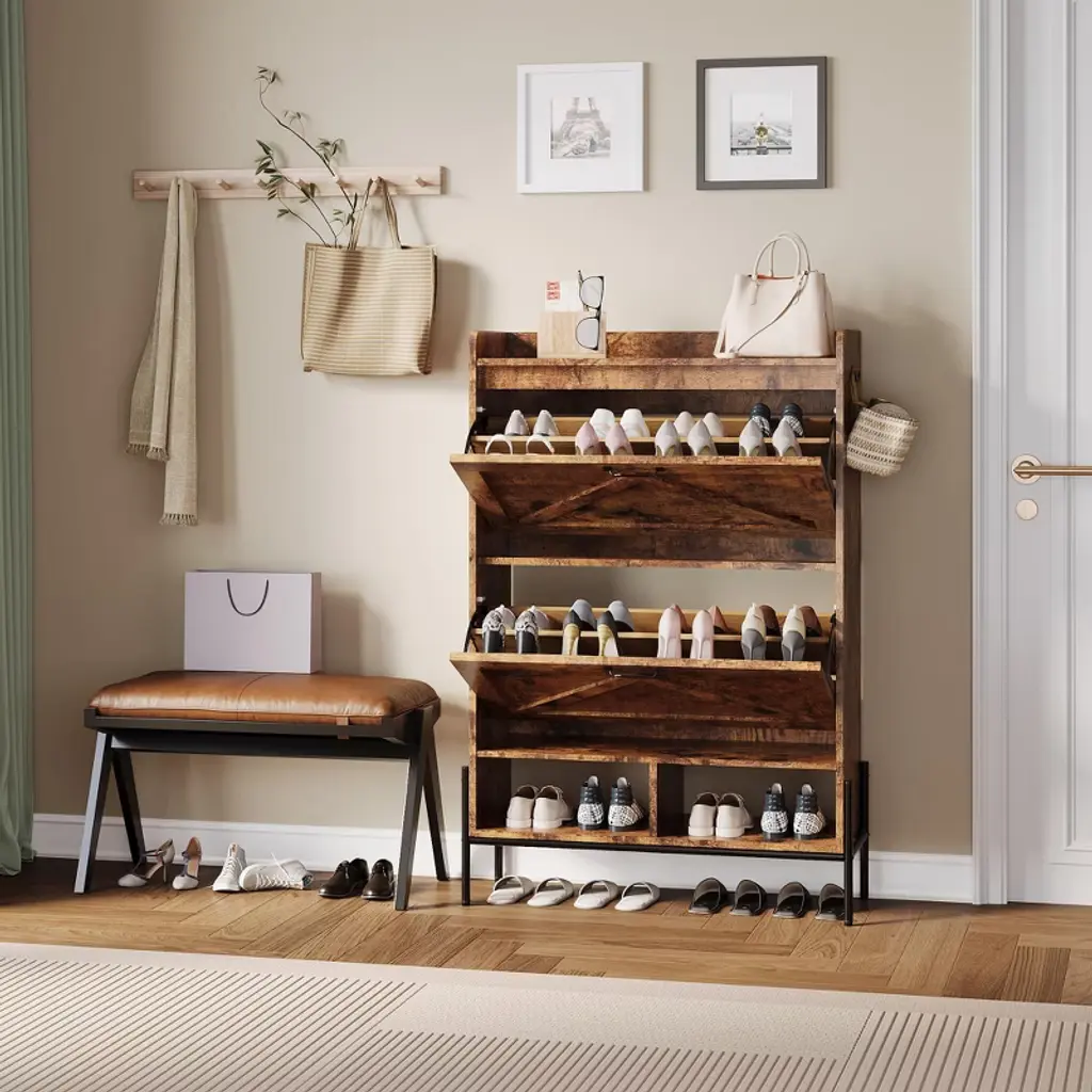 Cuisinsmart Farmhouse Shoe Storage Cabinet With Metal Legs, Narrow Hidden Shoe Rack With 2 Flip Drawers, Shoe Organizer For Entryway, Retro