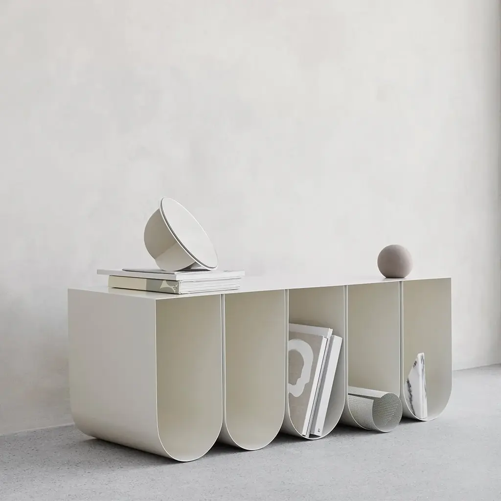 Made of slick steel the Curved Bench makes a bold and graphic statement in any habitat. The bench also enables you to store items within its curved base. Simple, distinct, and functional design - because the world is complex enough.