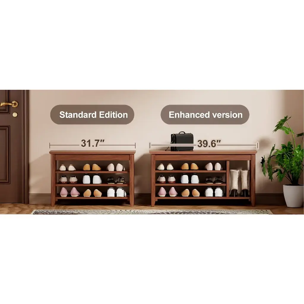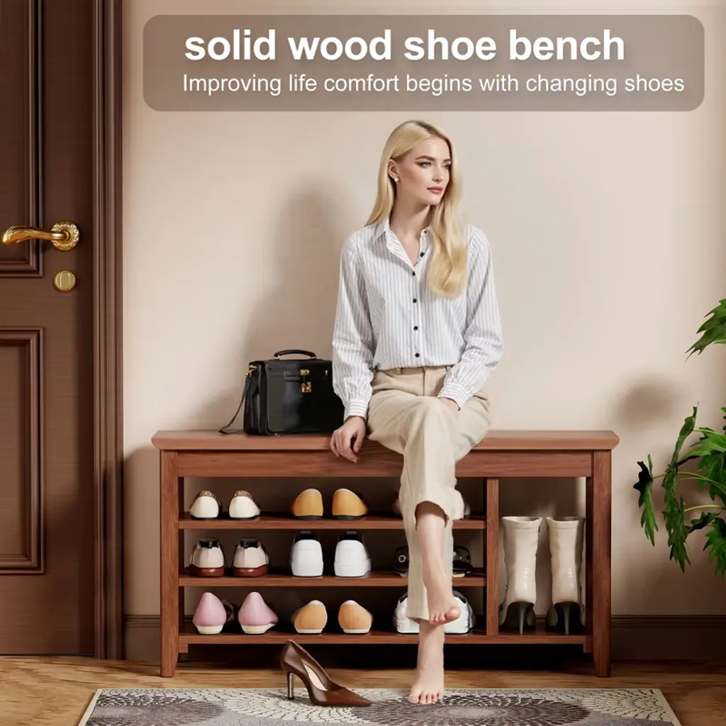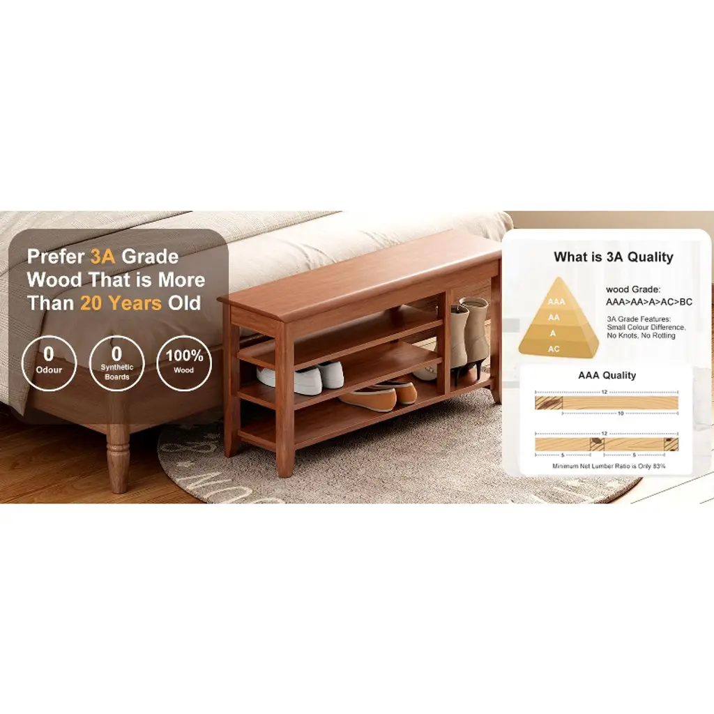 This stylish shoe bench is designed with a real rubberwood frame and a textured wooden seat, adding timeless elegance and natural beauty to your home. Whether placed in the entryway, bedroom, or living room, it complements any décor. The texture of the rubberwood, combined with its natural tones, brings warmth and style that fits seamlessly into modern, rustic, or mid-century designs