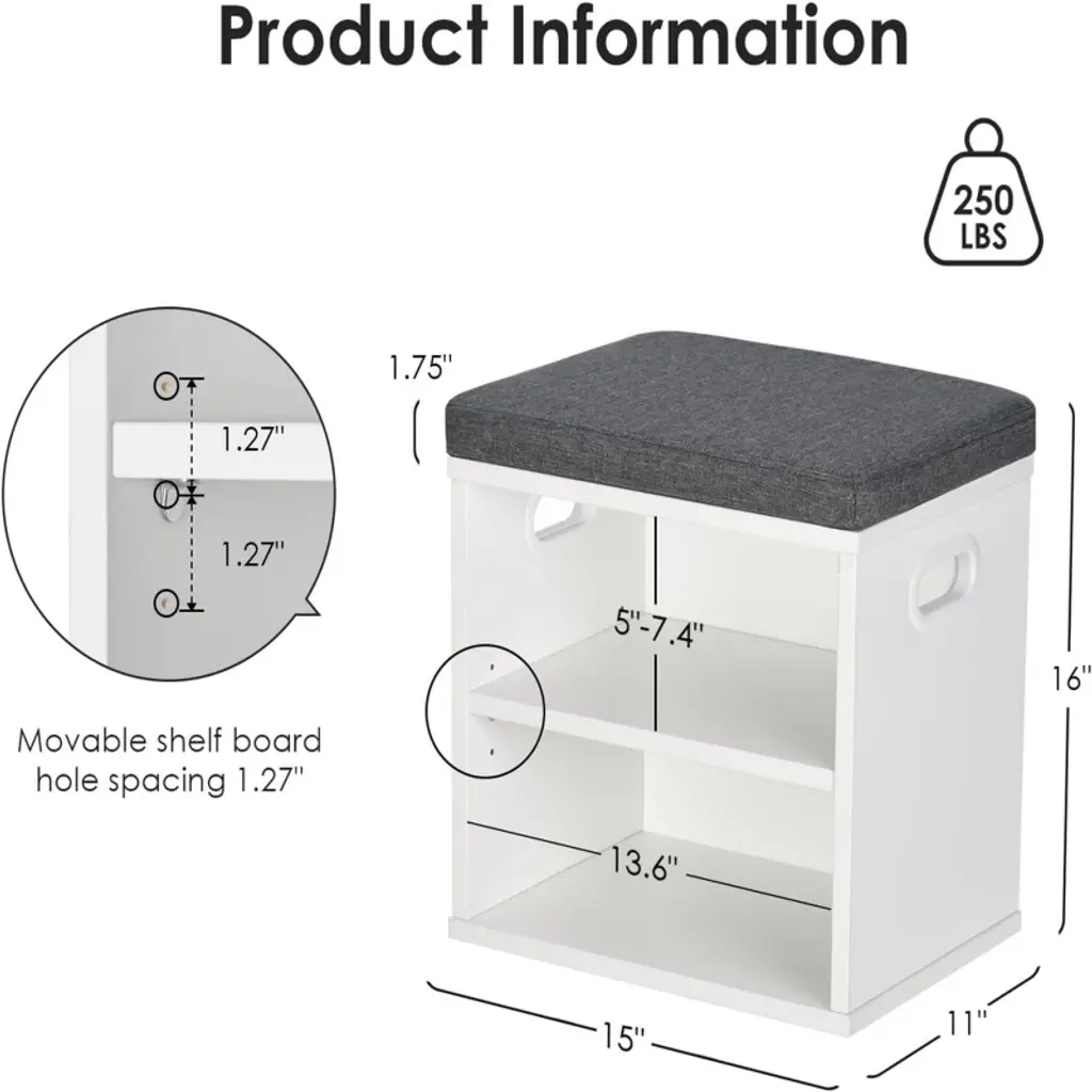 Fontoi Small Shoe Bench Entrywaywith Cushion Shoe Benches With Storage Seating Seat Entryway Shoe Rack Entryway Show Racks, White, 15.35"*11.4"*16"