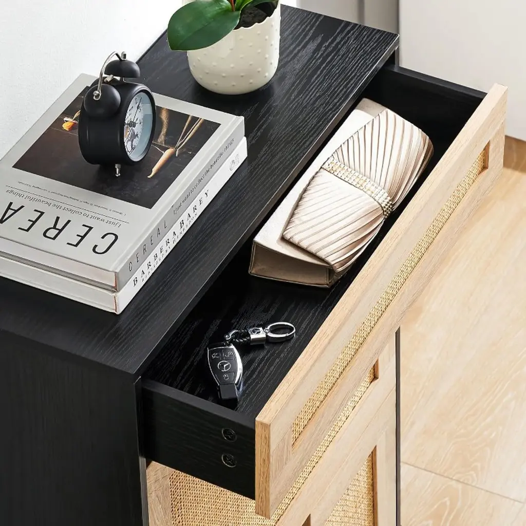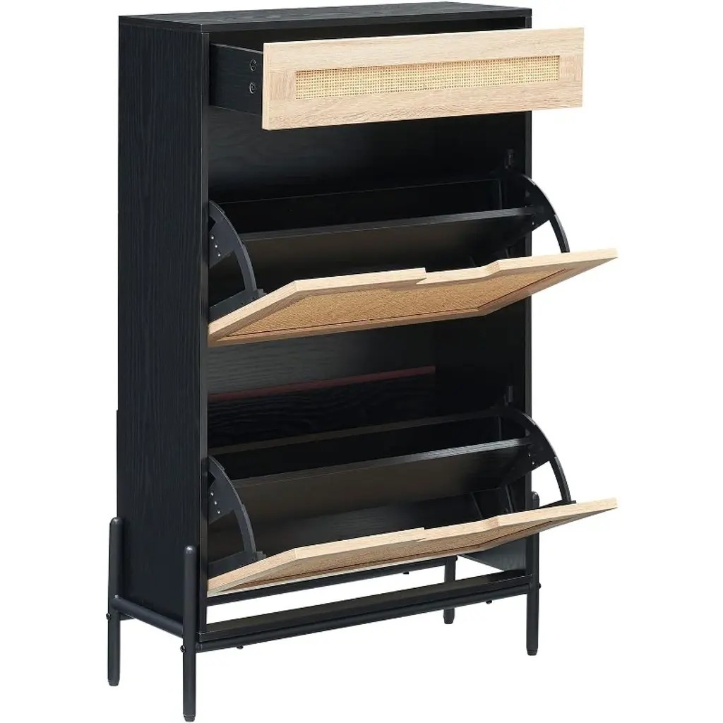 Freestanding Wooden Shoe Cabinet With Linen Front, 2 Flip-top Drawers And Closed Shoe Rack For A Hallway, Hallway Or Small Apartment,black