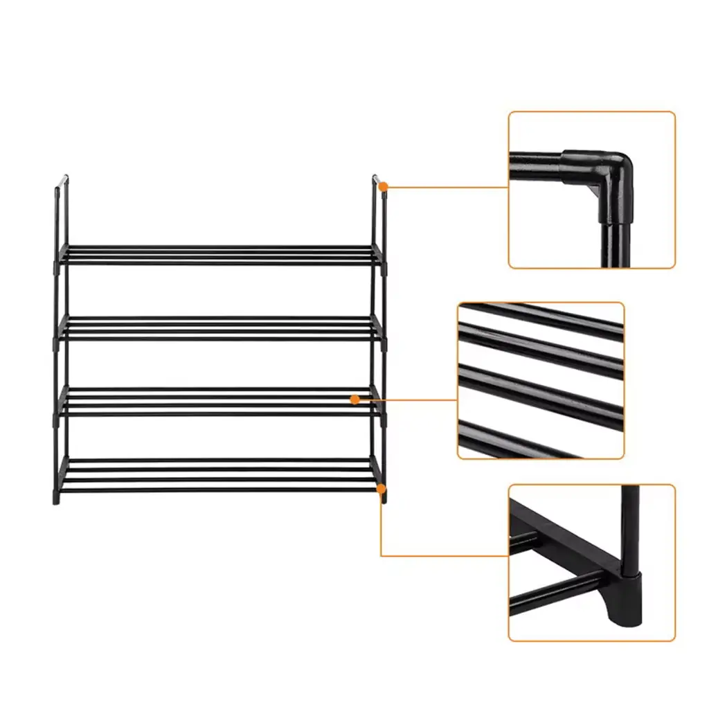 Gustowave 4 Tier Shoe Rack, Metal Shoe Rack Holds Up To 12-20 Pairs Of Shoes, Sturdy & Durable Iron Footwear Storage Rack, Storage Solution
