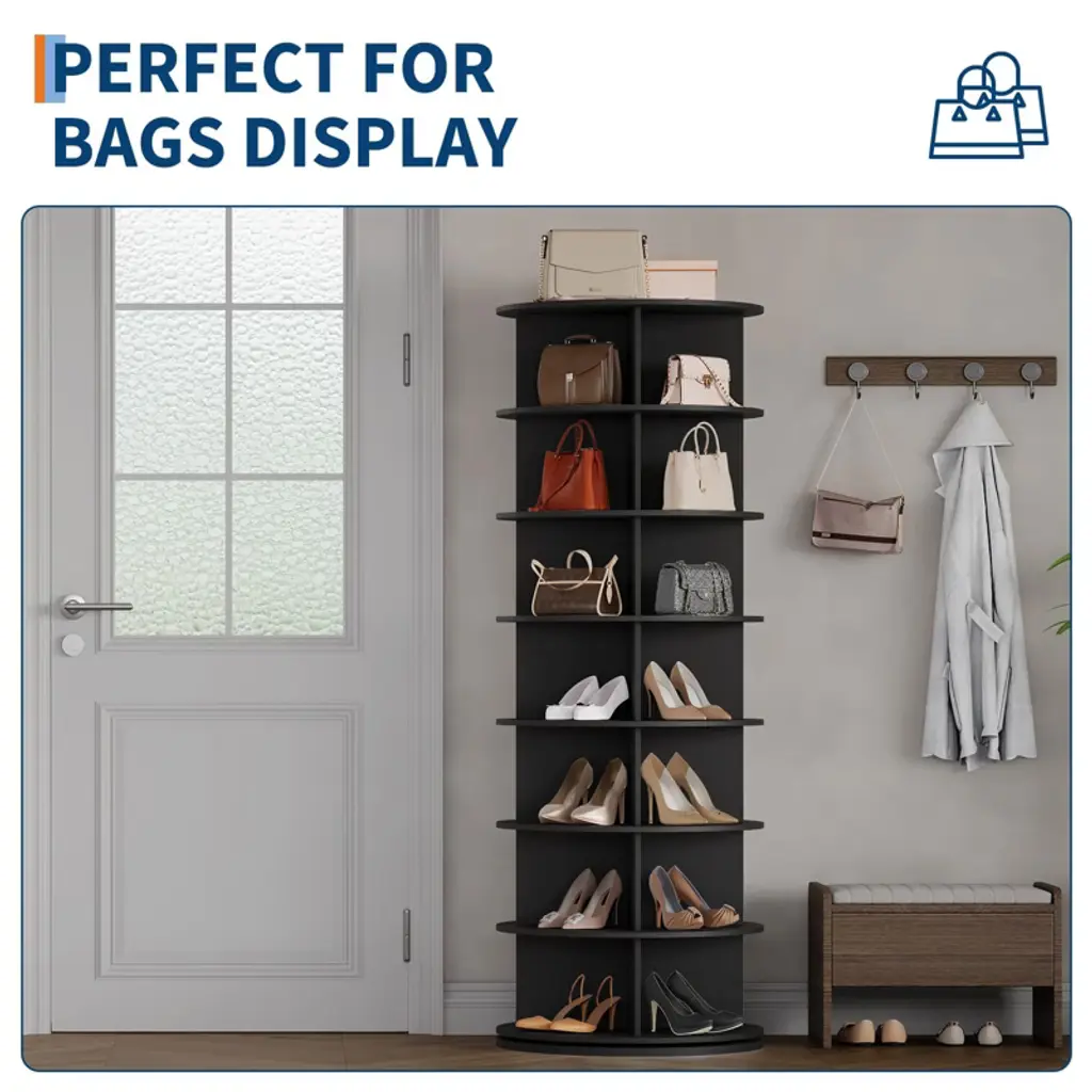 Maximize your shoe storage and keep your entryway organized with our 7 Tier Rotating Shoe Rack Tower. This innovative, free-standing spinning shoe organizer provides a stylish and functional solution for storing your entire shoe collection. Designed with a 360° revolving vertical spinning display, this round shoe rack allows you to easily access and display up to 42 pairs of shoes, making it perfect for families, shoe lovers, or anyone looking to declutter their space.