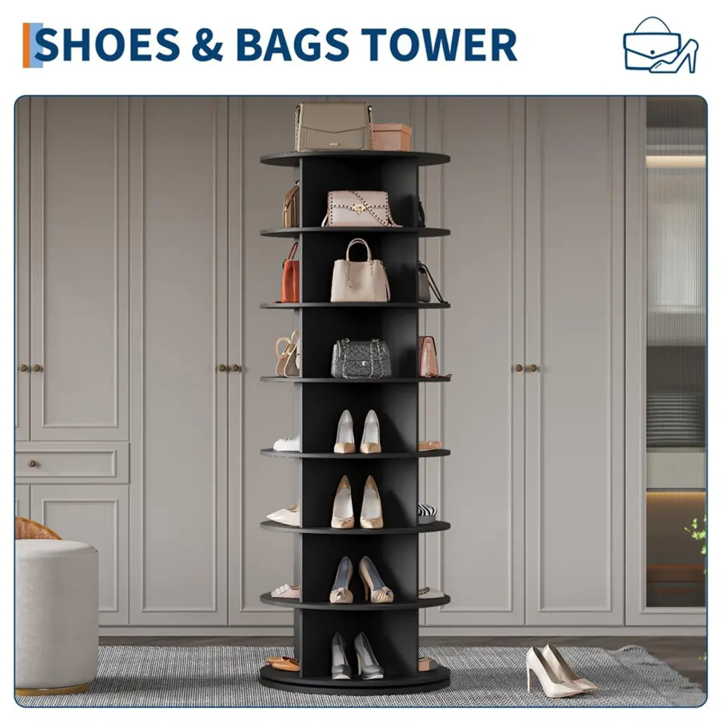 Gustowave 7 Tier Rotating Shoe Rack Tower, Free Standing Spinning Shoes Organizer, 360°revolving Vertical Shoe Display, Round Shoes Storage Rack,black