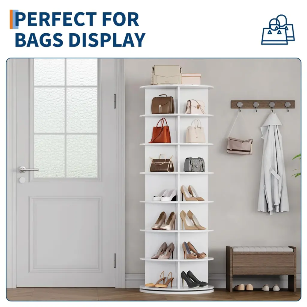 Maximize your shoe storage and keep your entryway organized with our 7 Tier Rotating Shoe Rack Tower. This innovative, free-standing spinning shoe organizer provides a stylish and functional solution for storing your entire shoe collection. Designed with a 360° revolving vertical spinning display, this round shoe rack allows you to easily access and display up to 42 pairs of shoes, making it perfect for families, shoe lovers, or anyone looking to declutter their space.