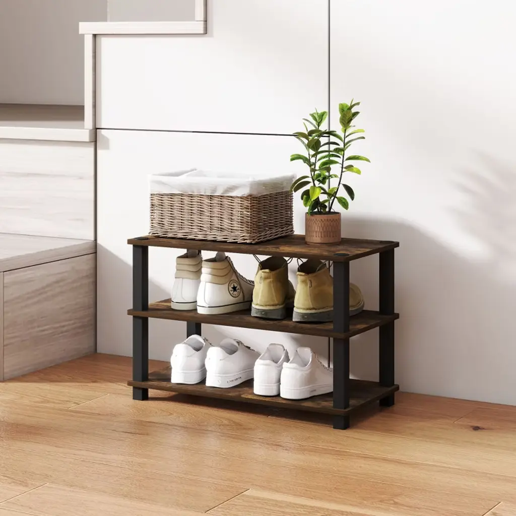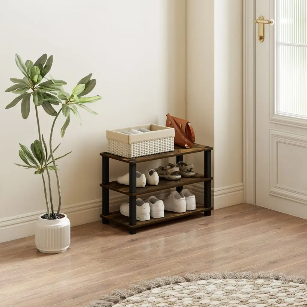 Keep shoes neat and accessible with this 3-tier HOMLUX shoe rack. It holds up to 9 pairs, assembles without tools, and fits entryways, closets, or dorms. Durable PVC frame and particle board shelves offer lightweight yet sturdy support. Choose from stylish colors to match any room decor.