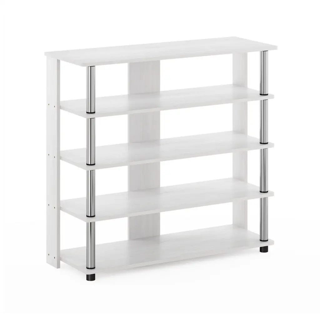 Organize up to 12 pairs of shoes with this 4-tier HOMLUX rack. Made with engineered particle board and PVC tubes, it's lightweight, durable, and safe with rounded edges. No tools needed for a 5-minute setup. Perfect for entryways, closets, or bedrooms. Choose from multiple colors to suit your space.
