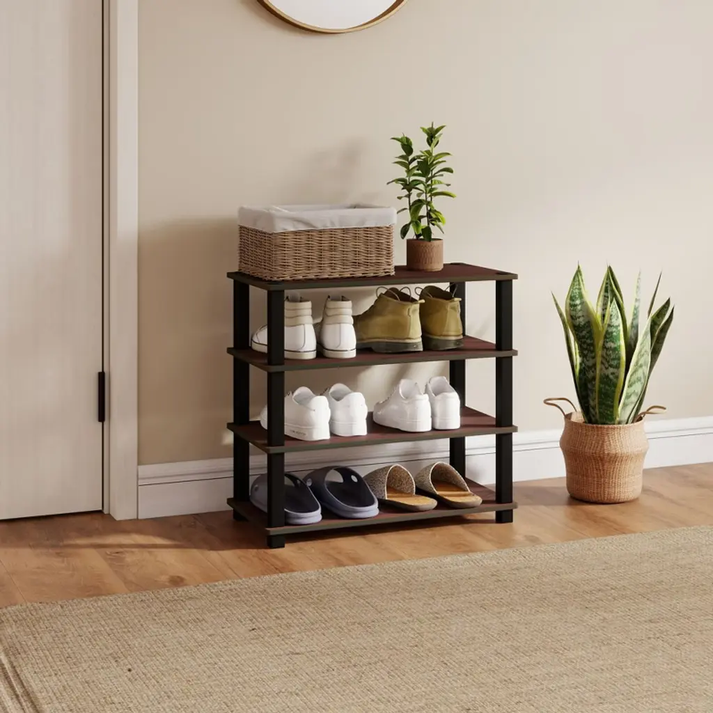 Organize up to 12 pairs of shoes with this 4-tier HOMLUX rack. Made with engineered particle board and PVC tubes, it's lightweight, durable, and safe with rounded edges. No tools needed for a 5-minute setup. Perfect for entryways, closets, or bedrooms. Choose from multiple colors to suit your space.