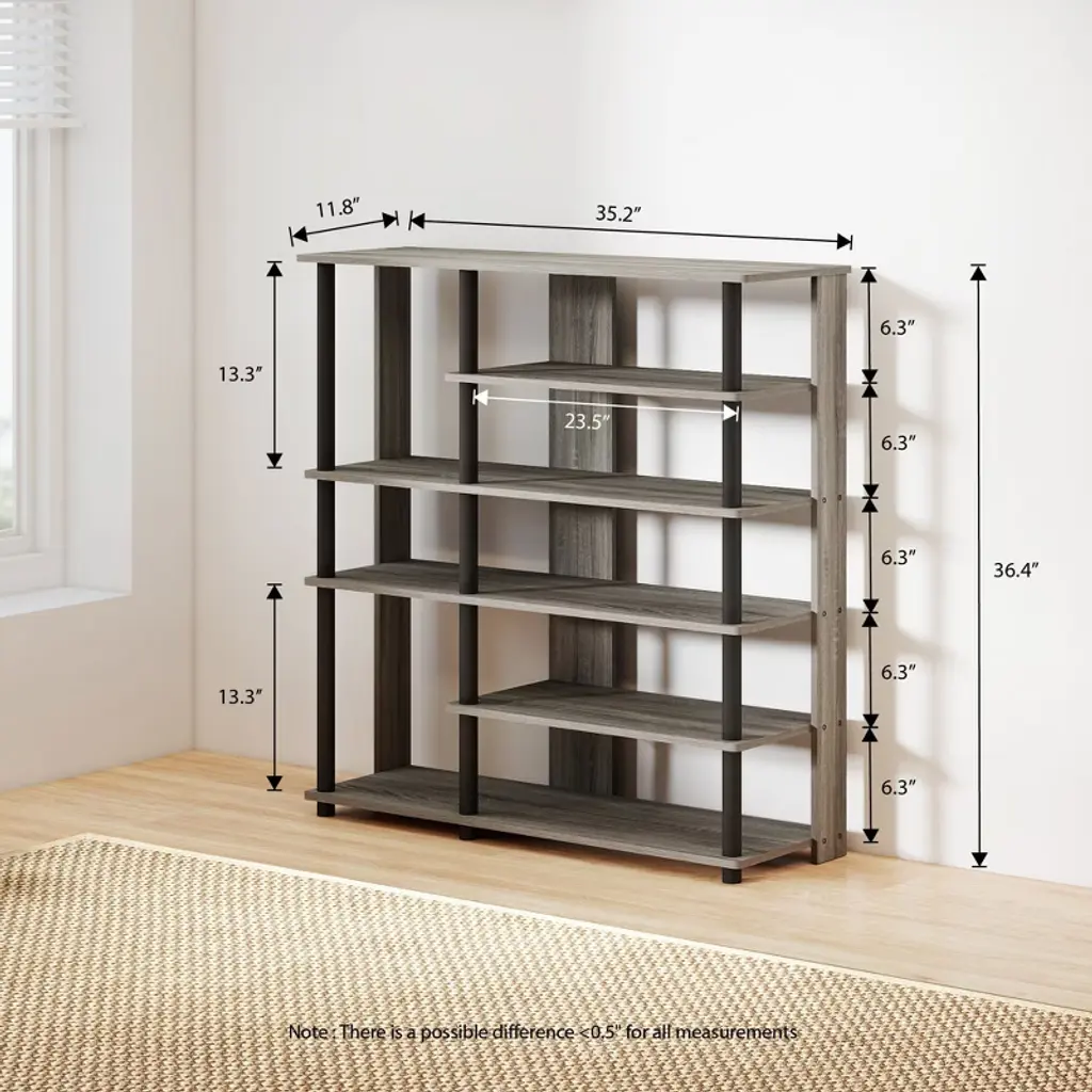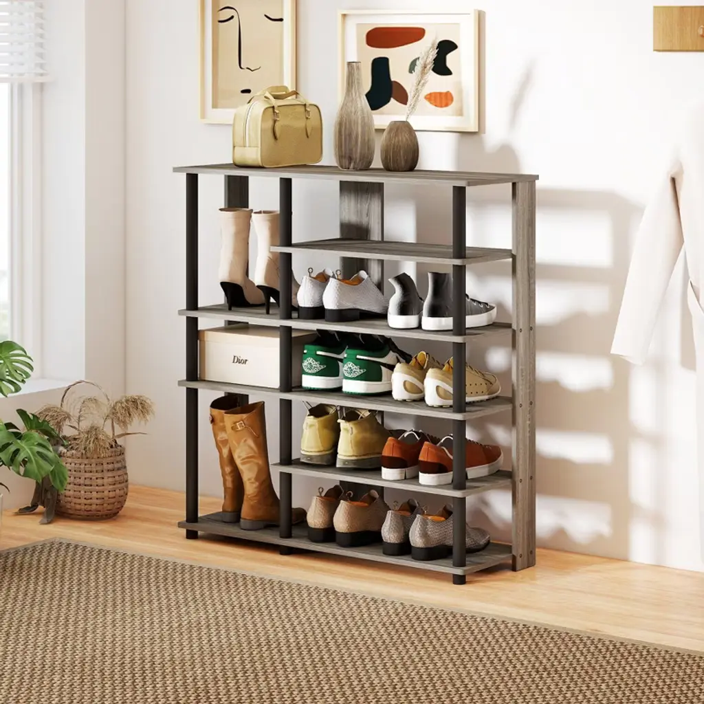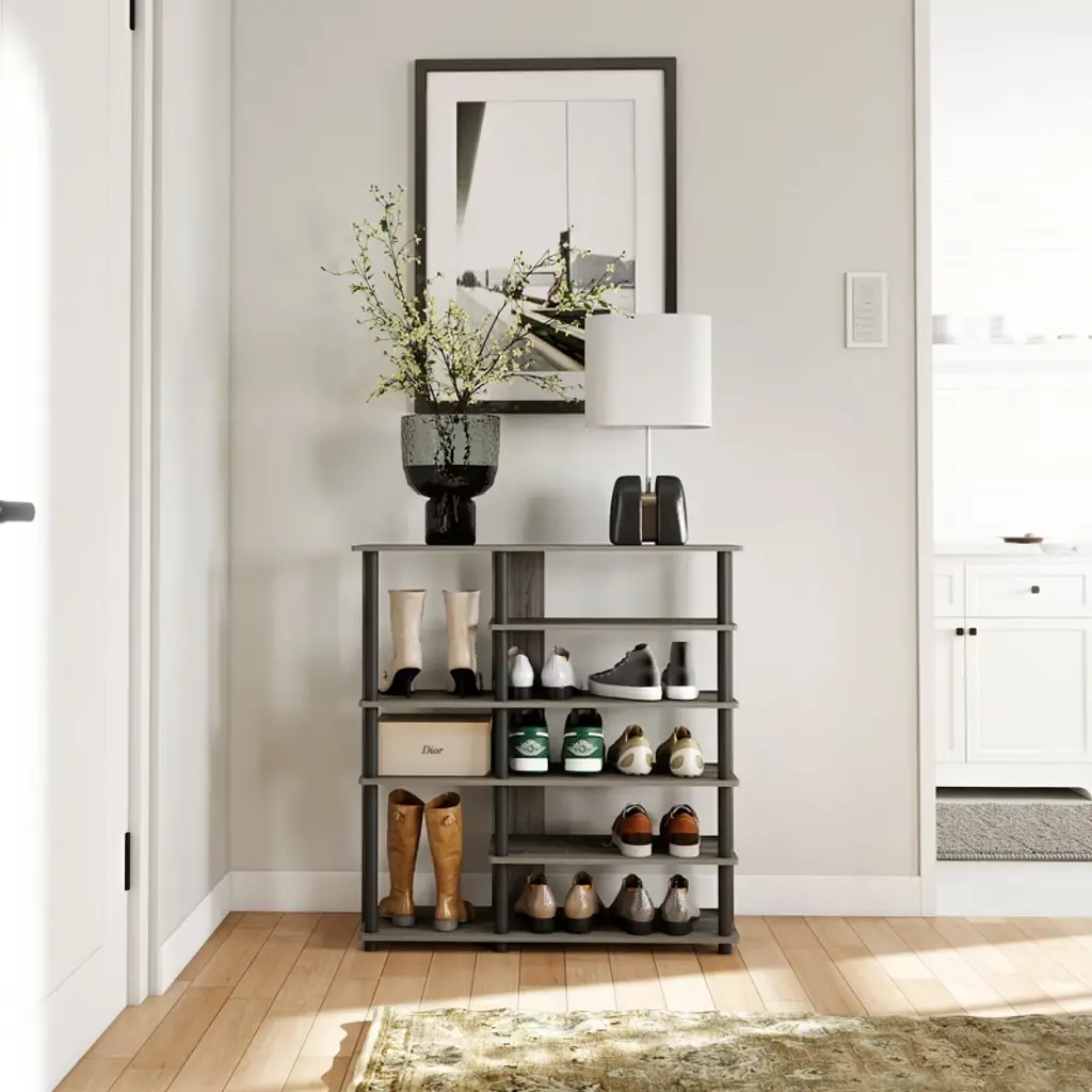 Declutter your home with the HOMLUX 5-Tier Shoe Rack, crafted from durable engineered wood in a sleek Espresso or French Oak Grey finish. Measuring 35.43”W x 36.61”H x 11.81”D, it comfortably holds around 13 pairs of shoes—perfect for entryways, closets, or bedrooms. With its modern open design and sturdy structure, it’s great for storage or display. Easy assembly with included parts and instructions.