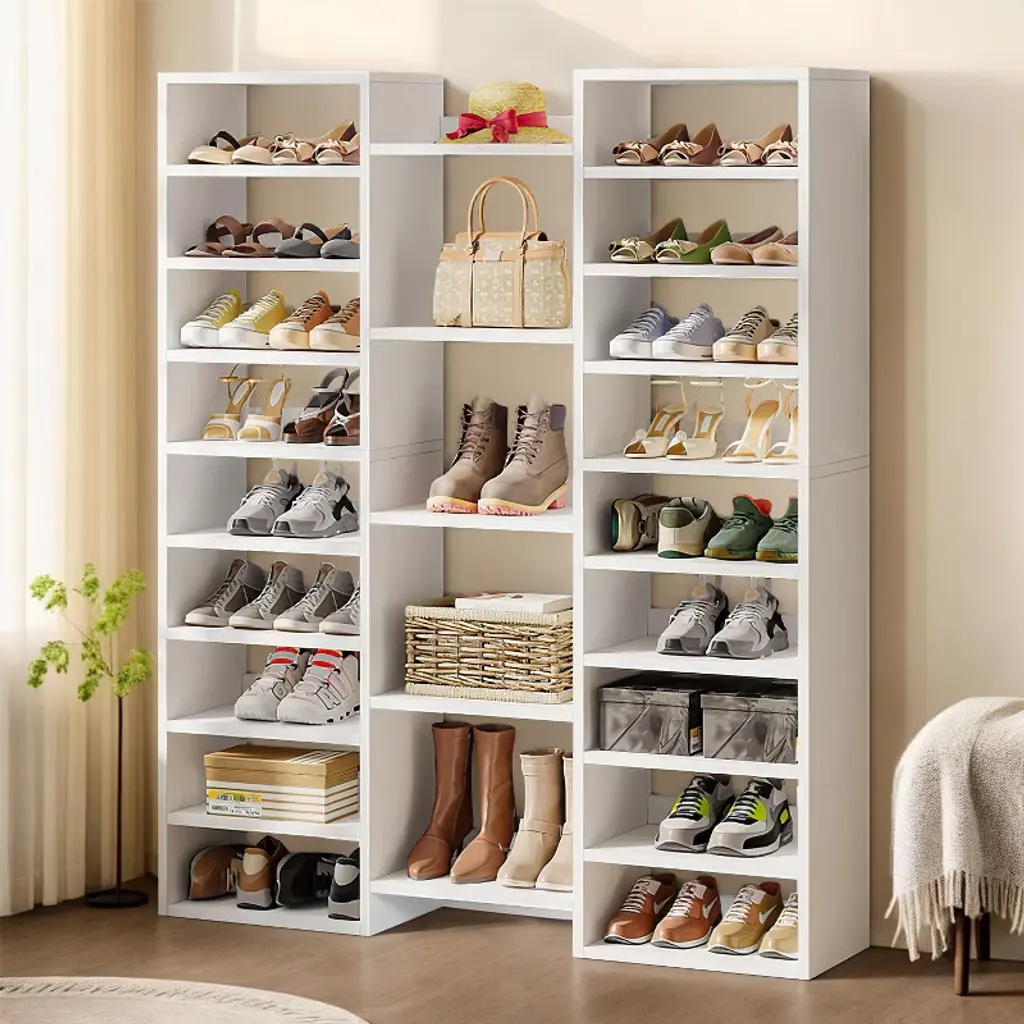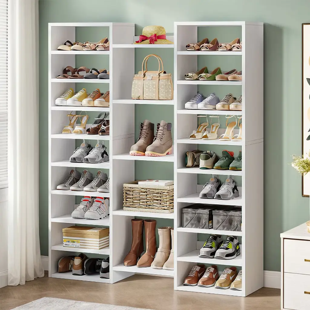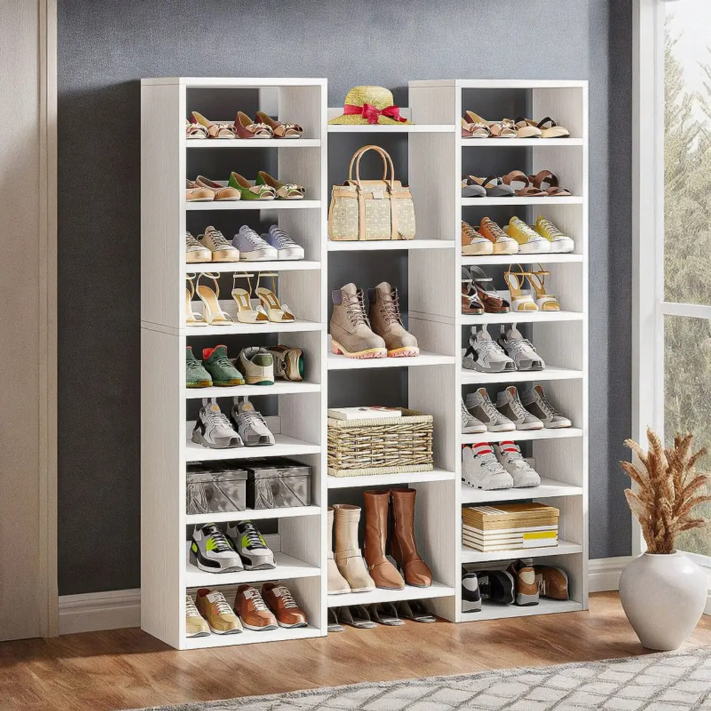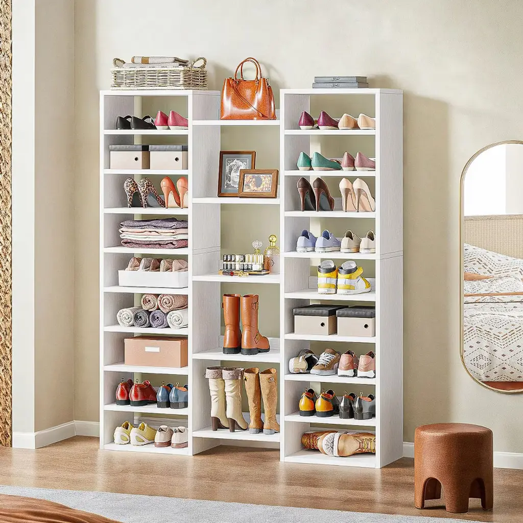 Hommoo Tall Freestanding Wooden Shoe Rack White