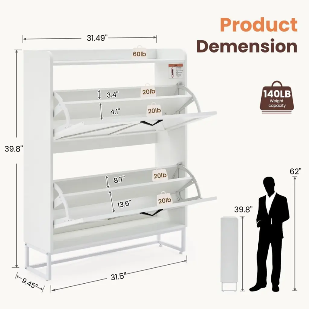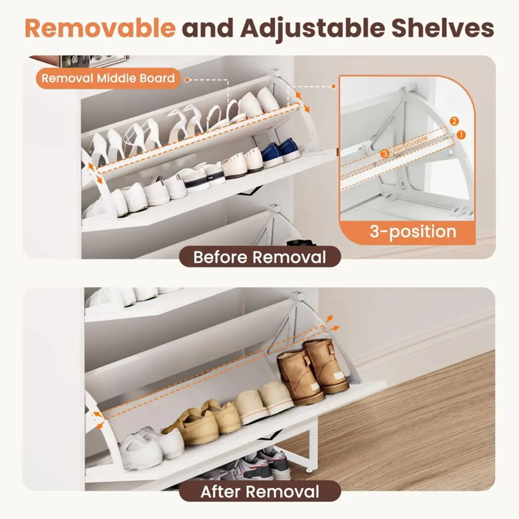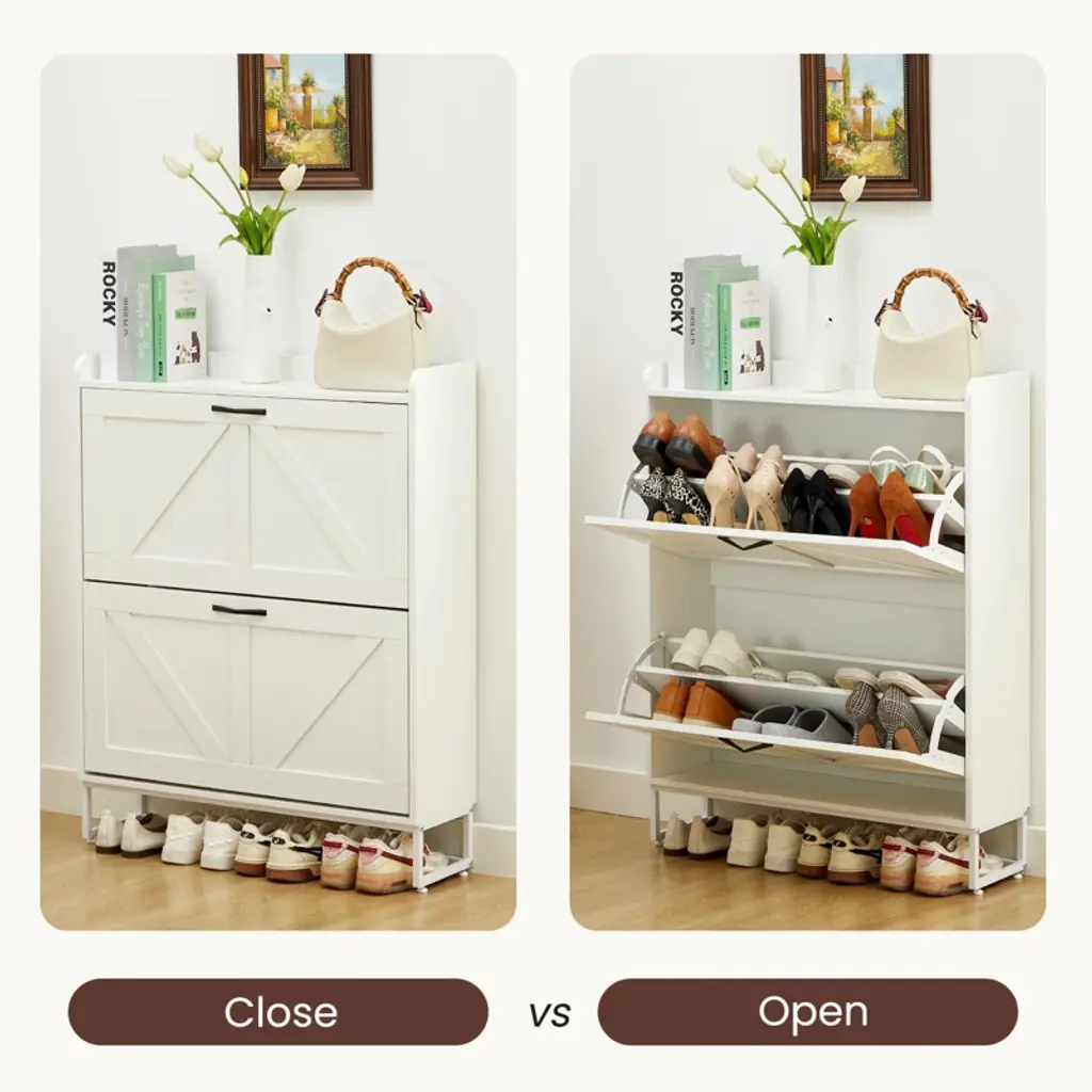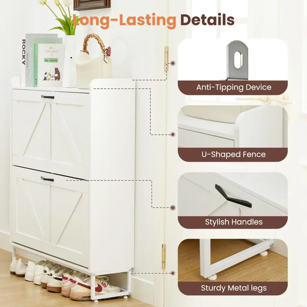 Hyleory Shoe Cabinet Organizers And Storage, Hidden Shoe Rack With 2 Flip Drawers Doors, Tall Narrow Shoe Cabinet,shoe Organizer For Entryway, Hallway