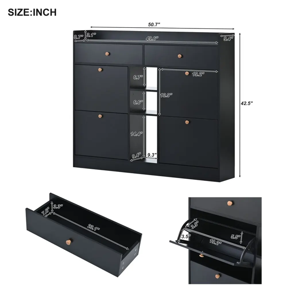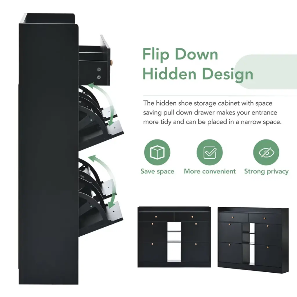 Ktmbdw Modern Shoe Storage Cabinet With 4 Flip Drawers And 2 Drawers, Freestanding Shoe Organizer For Entryway, Narrow Shoe Rack Cabinet, Black