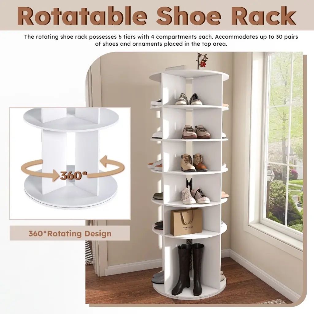 Ktmbdw Rotating Shoe Rack,6-tier Spinning Shoe Rack, 360¡ã Revolving Shoe Organizer,high Bottom Design Shoe Tower,fits 24 Pairs Of Shoes,6-tier White