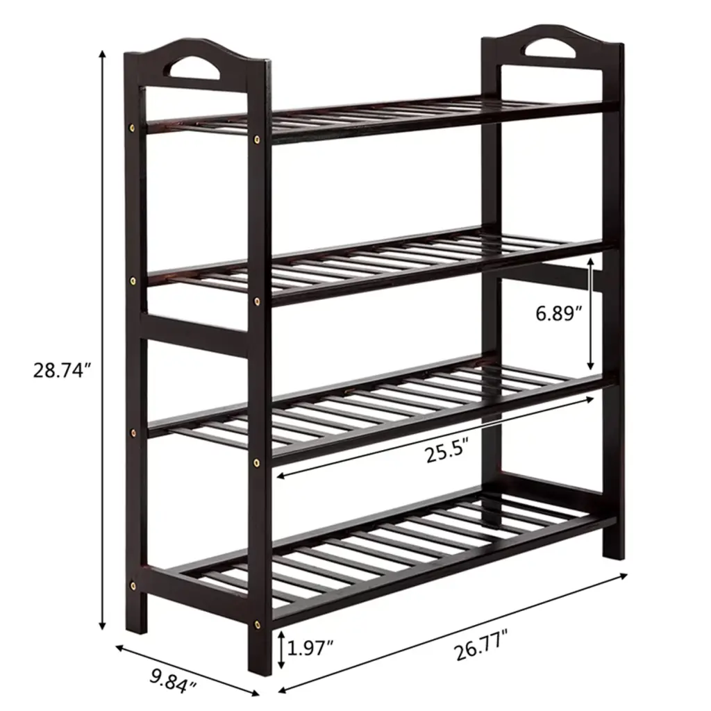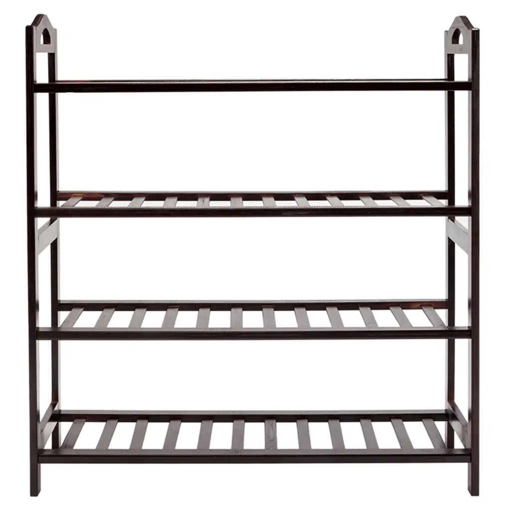 Ktmbdw Stackable Shoe Rack, 4 Tier Bamboo Shoes Rack Storage Shelf, Holds Up To 16 Pairs Shoes For Living Room, Entryway, Small Spaces, Coffee