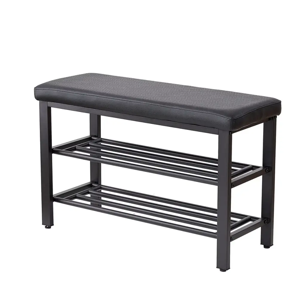 Kumasinova Shoe Storage Bench With Cushioned Seat,shoe Organizer With 2 Shelves,metal Frame,shoe Rack For Entryway,hallway,bedroom,living Room,black