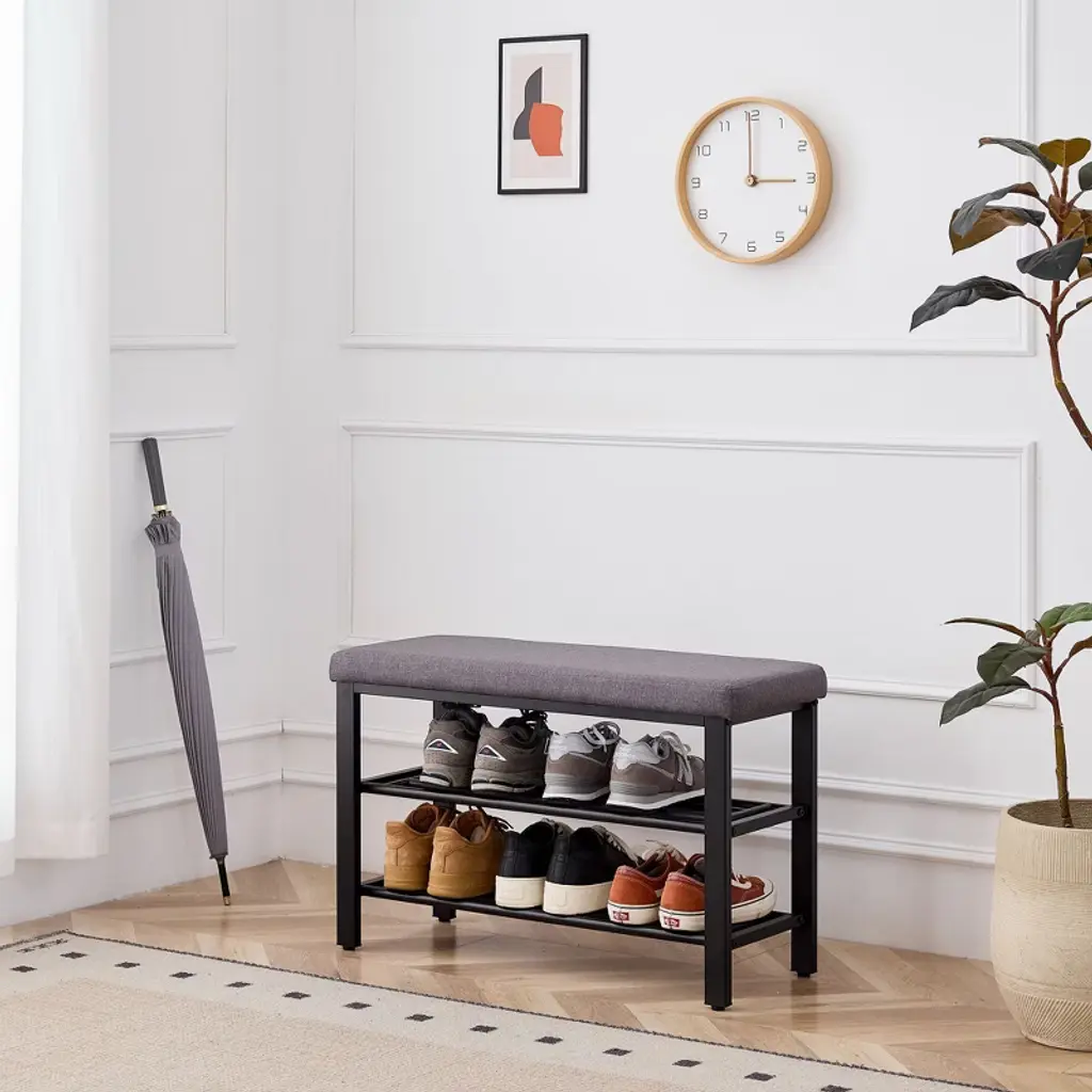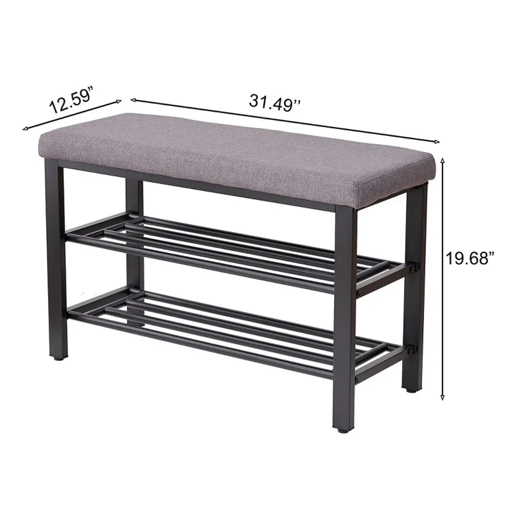 Kumasinova Shoe Storage Bench With Cushioned Seat,shoe Organizer With 2 Shelves,metal Frame,shoe Rack For Entryway,hallway,bedroom,living Room,gray