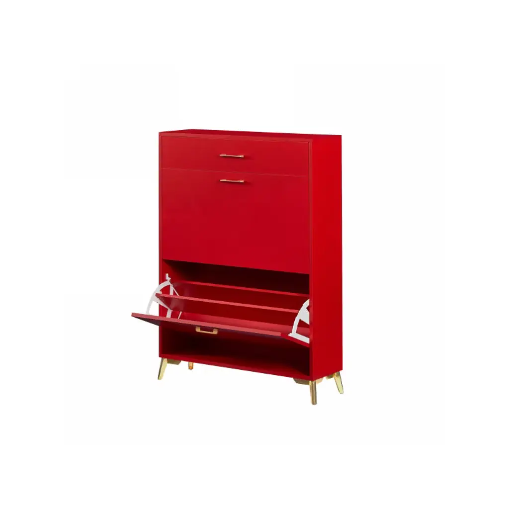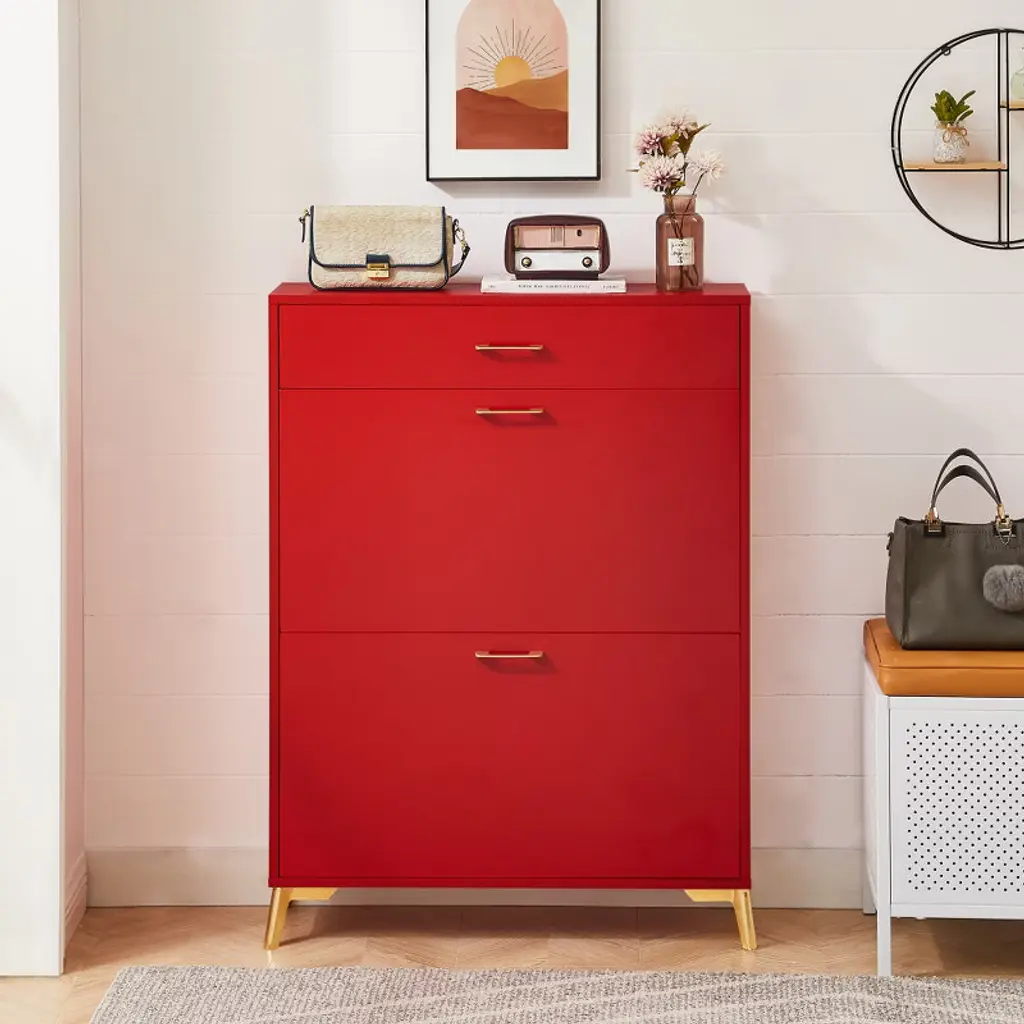 Kwpzqeb Shoe Storage Cabinet, Wooden Shoe Cabinet Storage With 2 Flip Drawers, Hidden Shoe Cabinet, Freestanding Shoe Rack For Entryway - Red