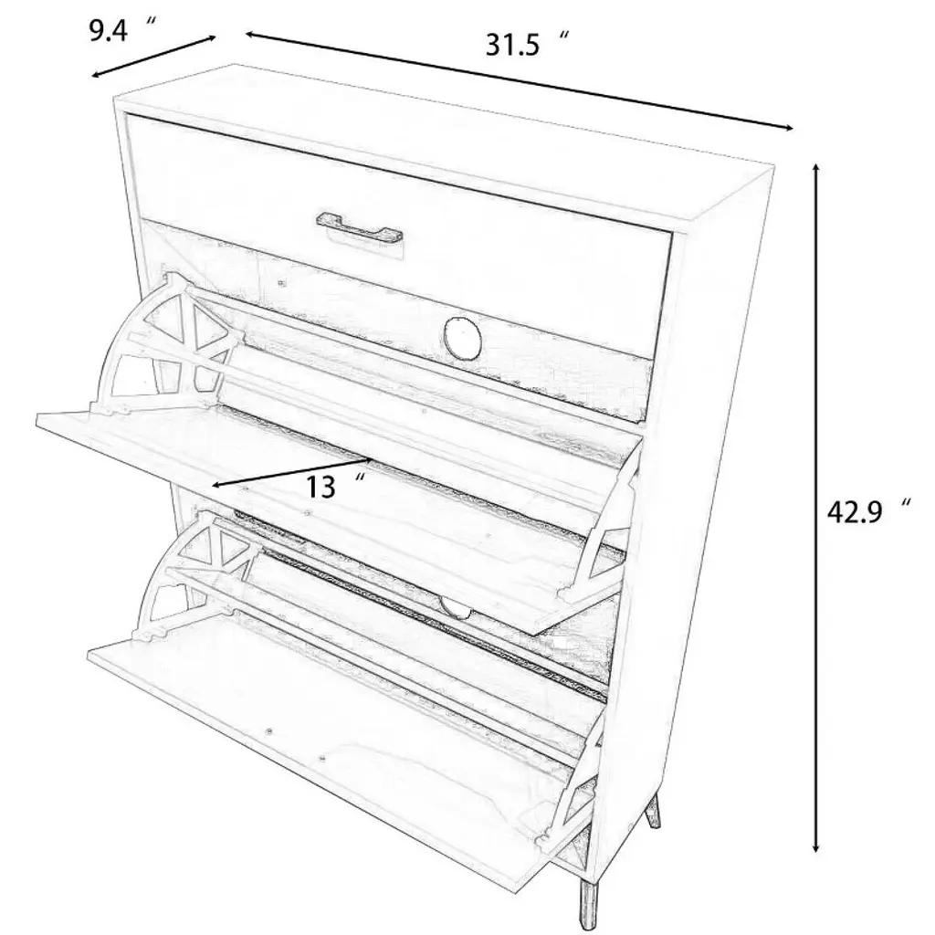 This wooden concealed shoe cabinet features two flip-top drawers, each with two tiers, each capable of holding four pairs of shoes. There's also a storage drawer perfect for car keys or other small items. This stylish and minimalist shoe cabinet is a space-saving addition, perfect for an entryway, hallway, living room, or porch.