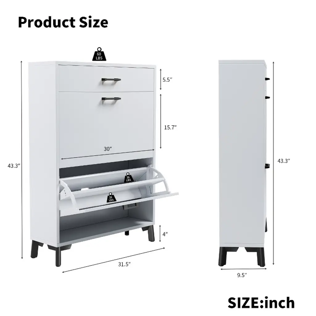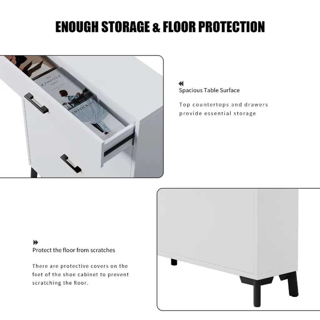 Kwpzqeb Shoe Storage Cabinet, Wooden Shoe Cabinet Storage With 2 Flip Drawers, Hidden Shoe Cabinet, Freestanding Shoe Rack For Entryway - White