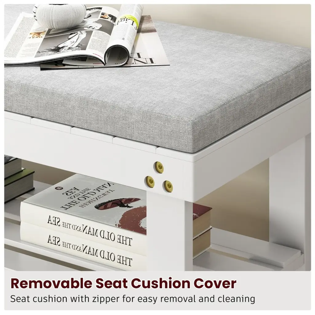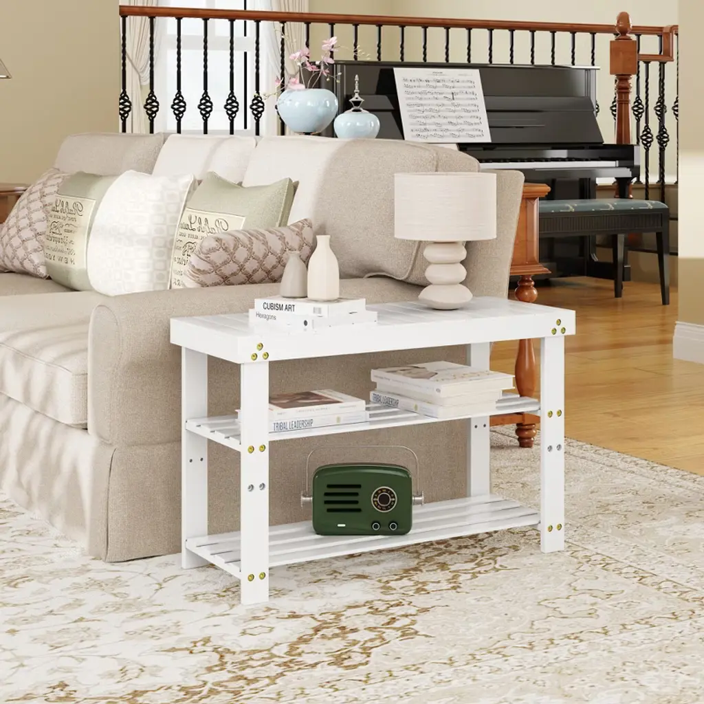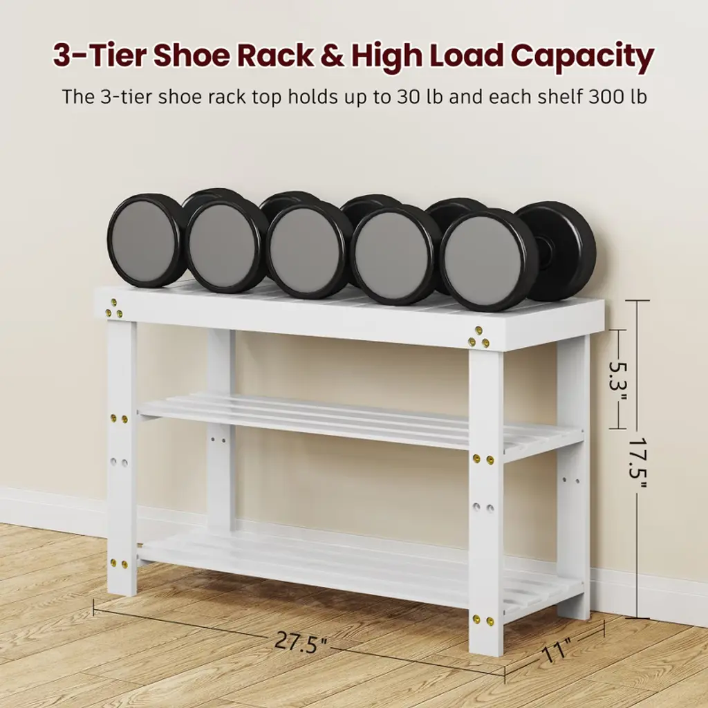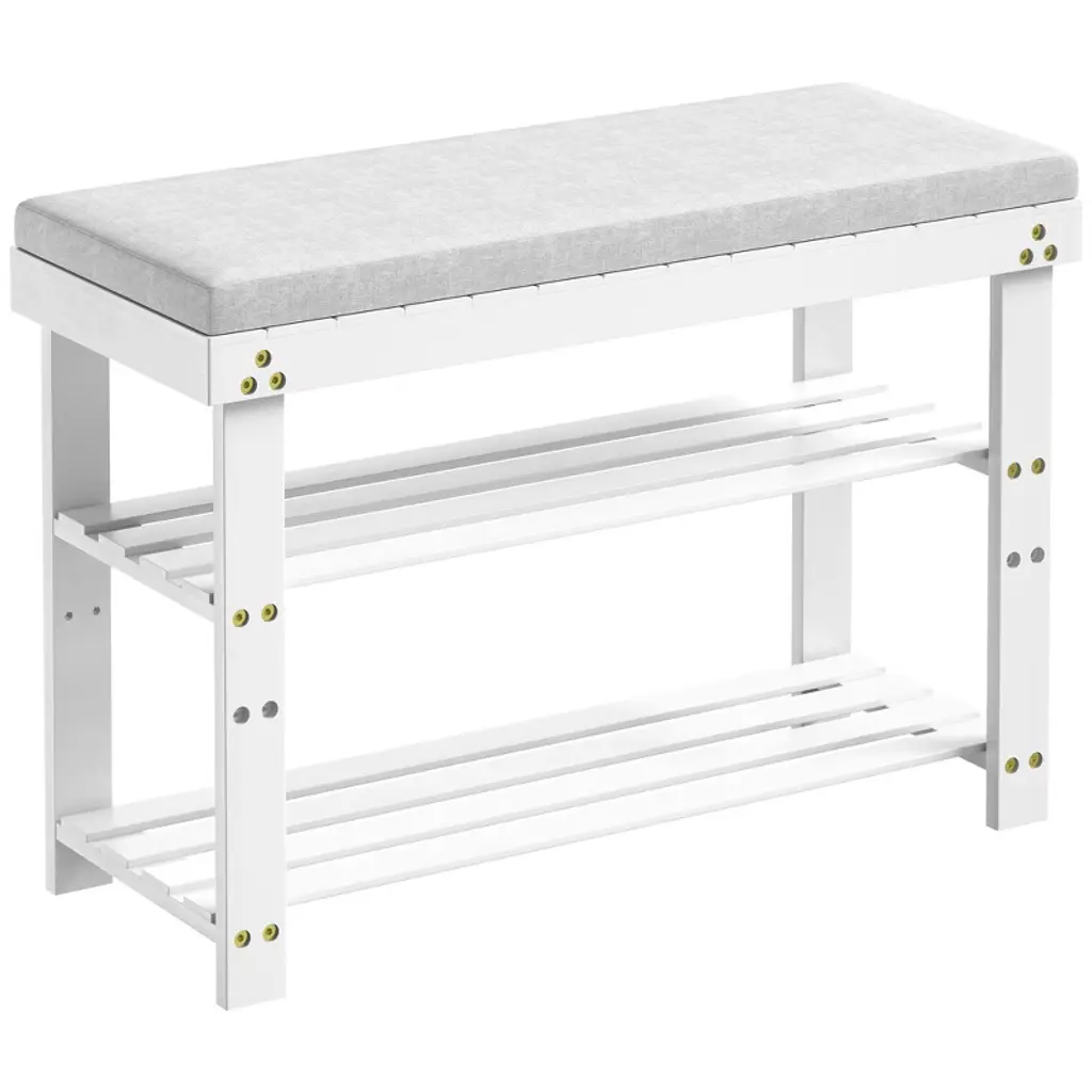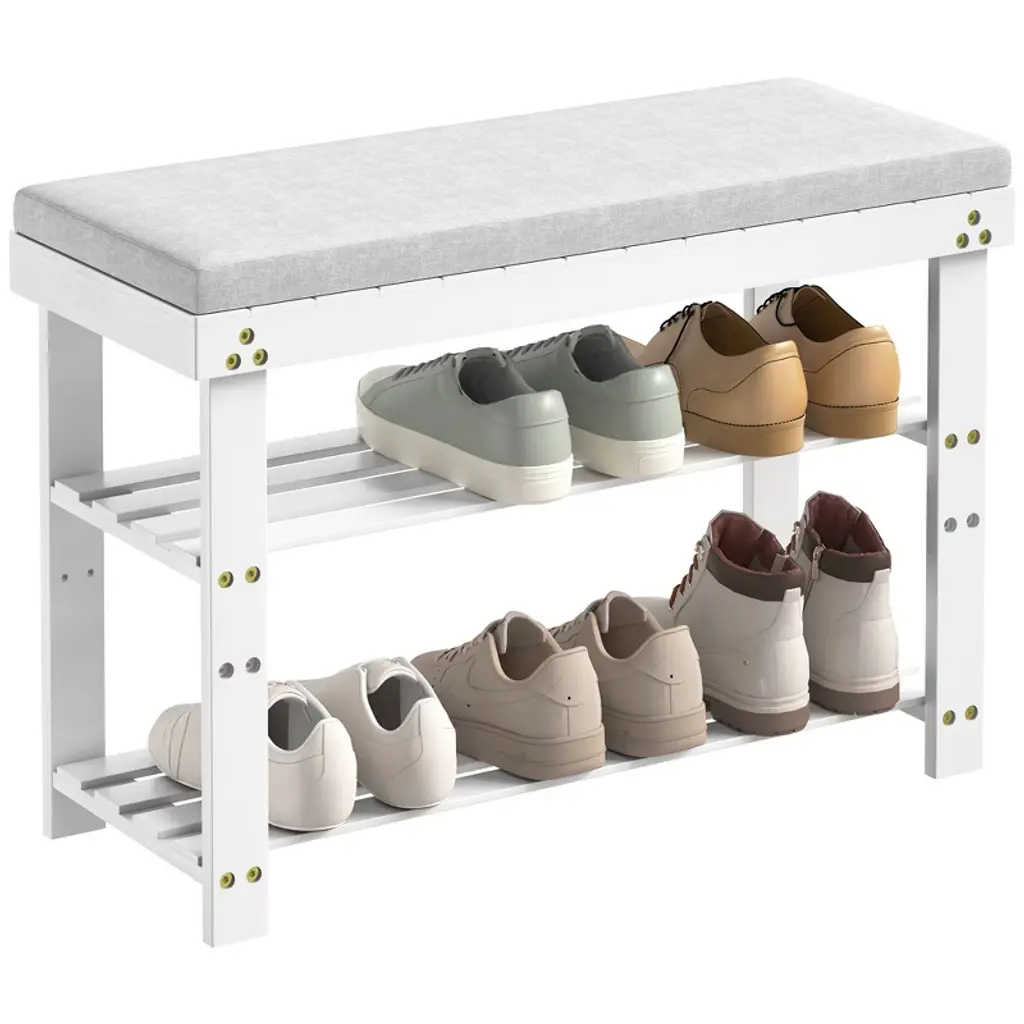 Mayeerty 3 Tier Shoe Racks Bamboo Shoe Bench Entryway With Cushion And Adjustable Shelves For Hallway Mudroom Living Room White