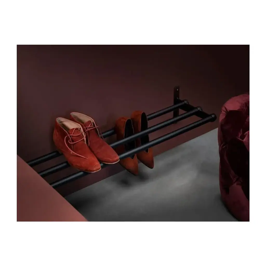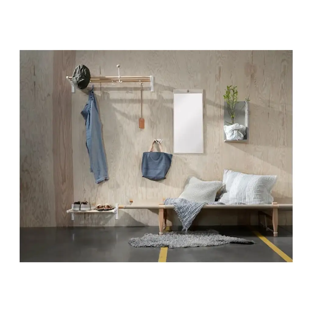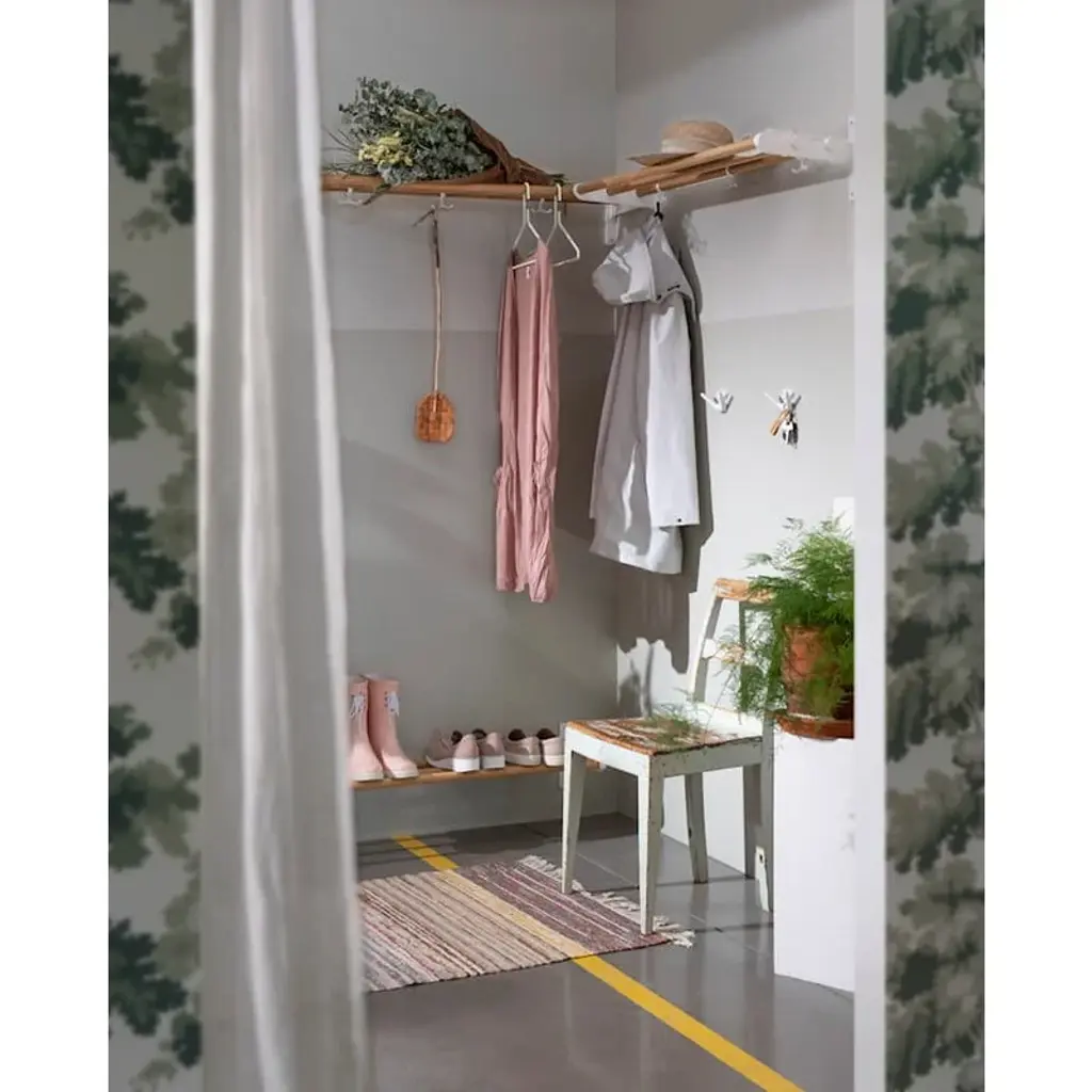 Essem Design's Nostalgi rack is a versatile storage solution for both your hats and shoes – its purpose entirely depends on the height at which you choose to install it. Positioned closer to the ground, the Nostalgi becomes a handy shoe rack for your favorite sneakers, beloved boots, and other footwear. When mounted higher on the wall, it offers a convenient shelf for storing hats, caps, and other accessories. The storage capacity can be further improved with additional hooks that attach to the metal structure of the shelf. The package includes three separate mounting hooks. Originally designed by Gunnar Bolin in 1937, the Nostalgi shelf is made of durable birch. This design classic effortlessly increases the functionality of the entryway, hallway, or bedroom wall.