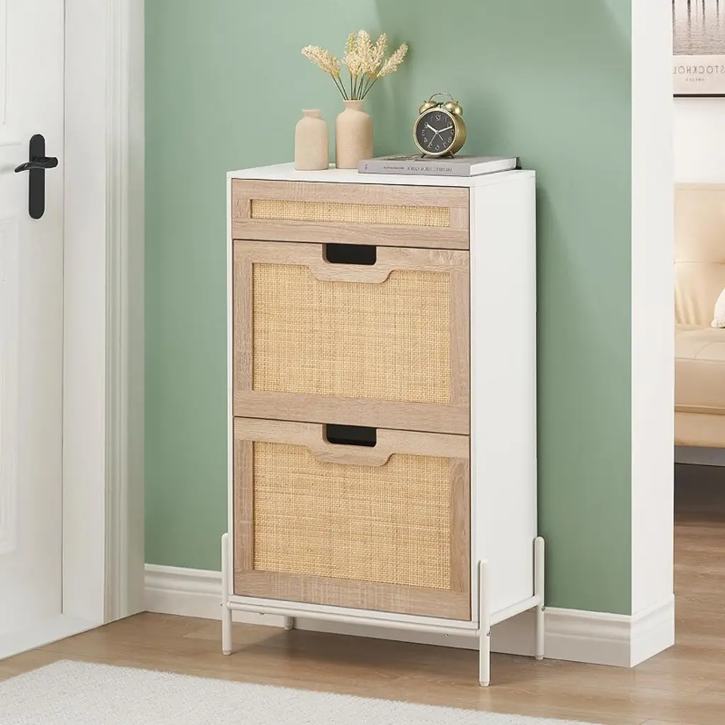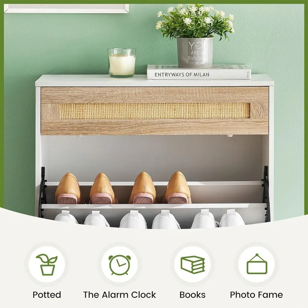 Rattan Shoe Storage Cabinet with 2 Flip Door and 1 Drawer,Freestanding Shoe Organizer Rack for Entryway, Shoe Rack Shelves for Slippers, Sneakers, Heels, Boots