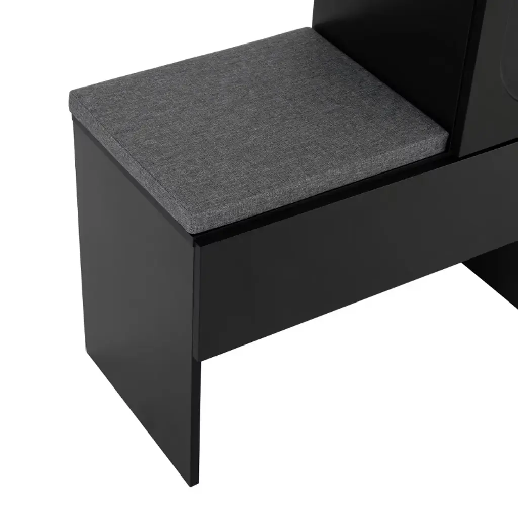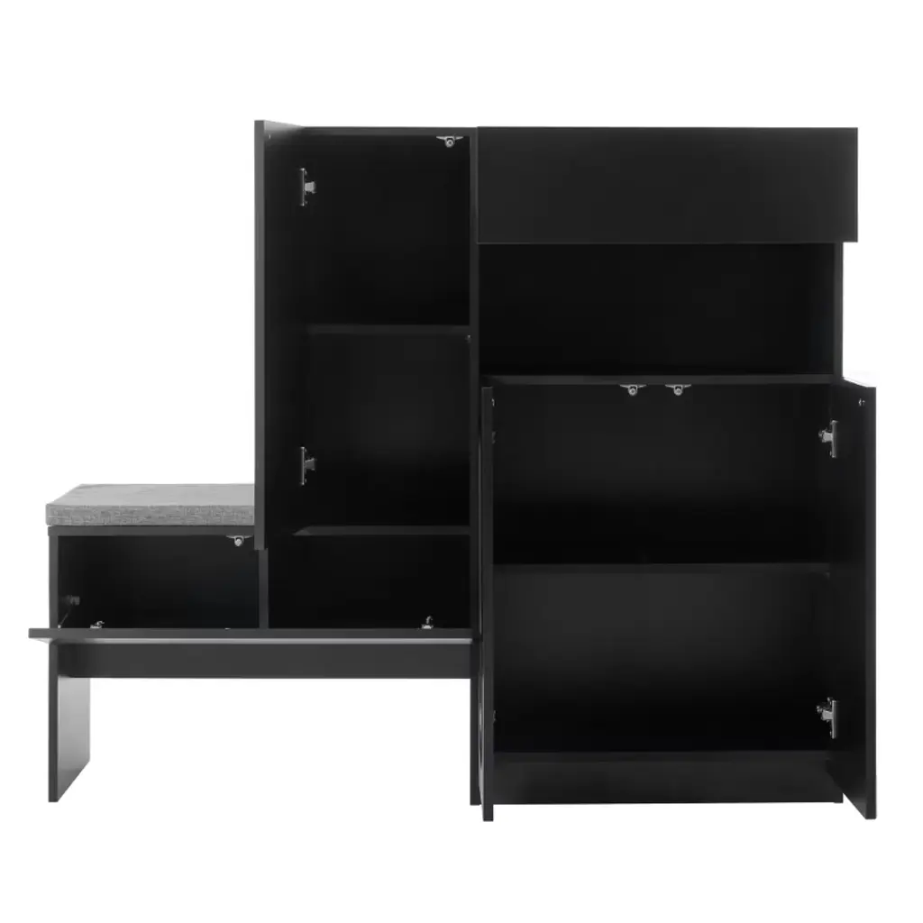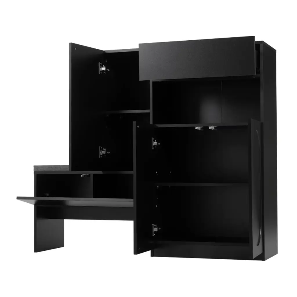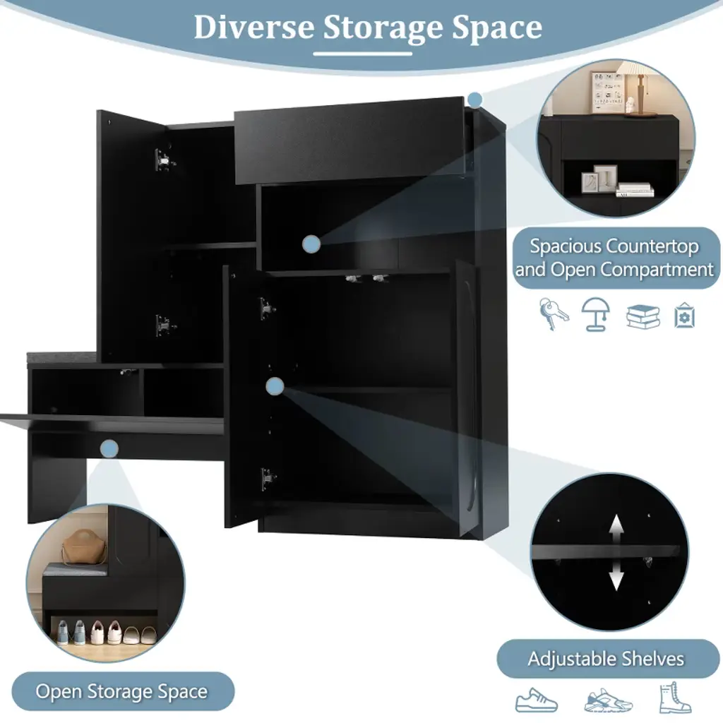 Risokeys Elegant 2-in-1 Versatile Shoe Rack Organizer With Soft Cushion Storage Bench With Arched Doors & Rebound Devices And Adjustable Shelves,black