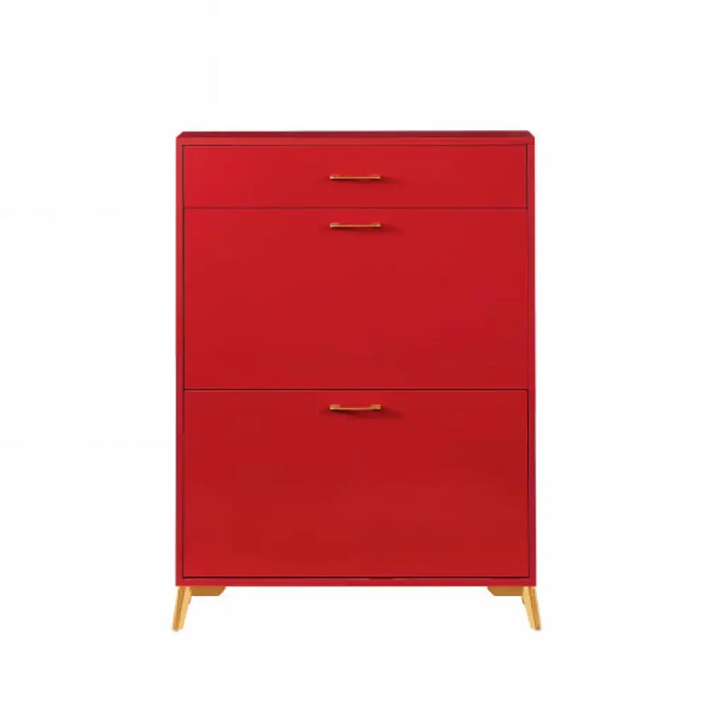 Risokeys Shoe Rack Storage Organizer With 2 Flip Drawers,with Metal Handles And Metal Legs,freestanding Shoe Cabinet For Entryway,hallway,red