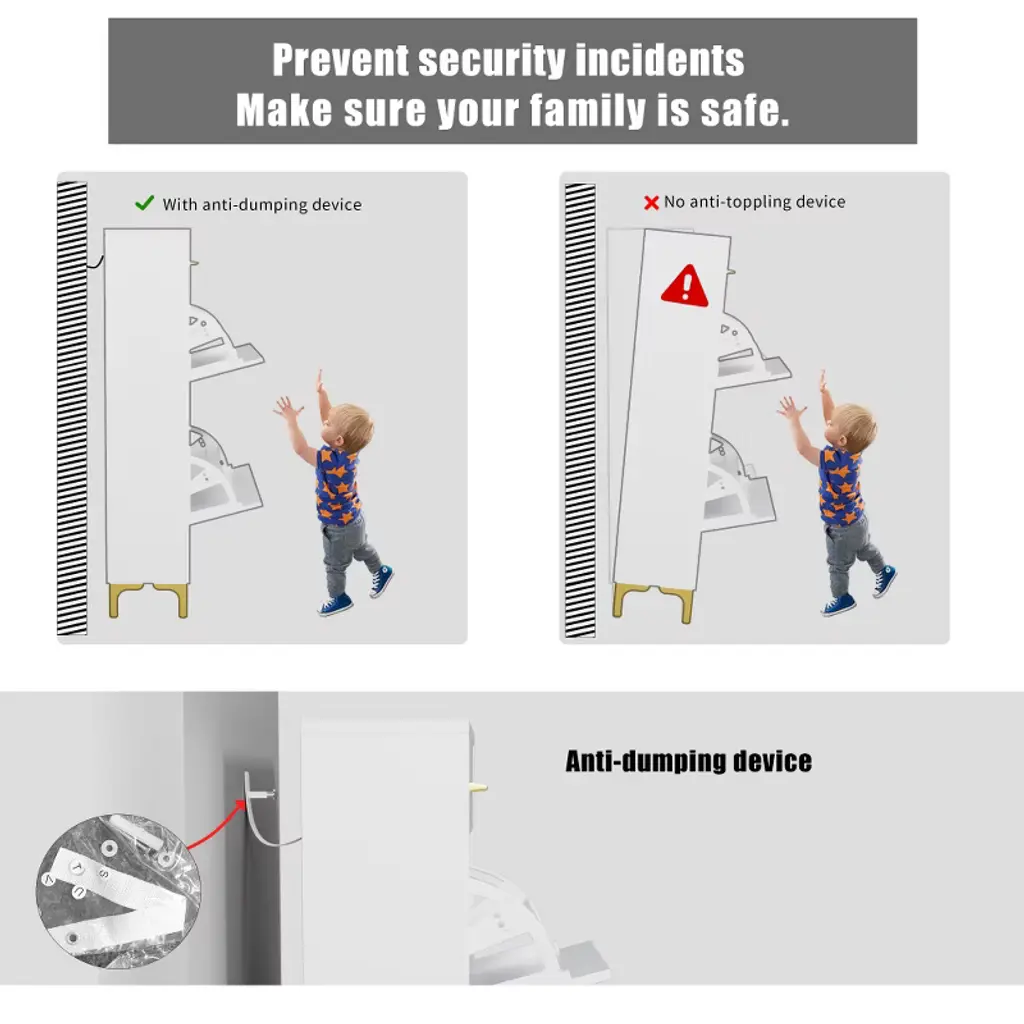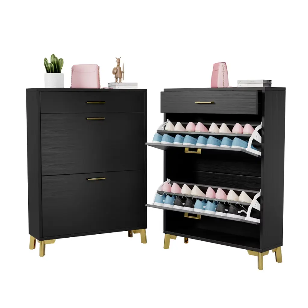 The space is large enough, the top of the shoe cabinet can be put out of the need for small items, the bottom of the shoe cabinet can be put slippers.It has a small footprint and can be placed anywhere you want.Quality assurance, can last a long time.