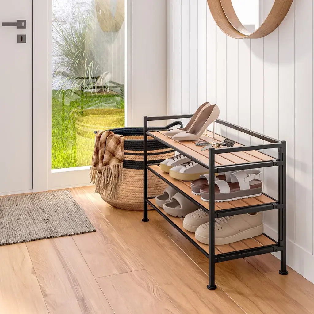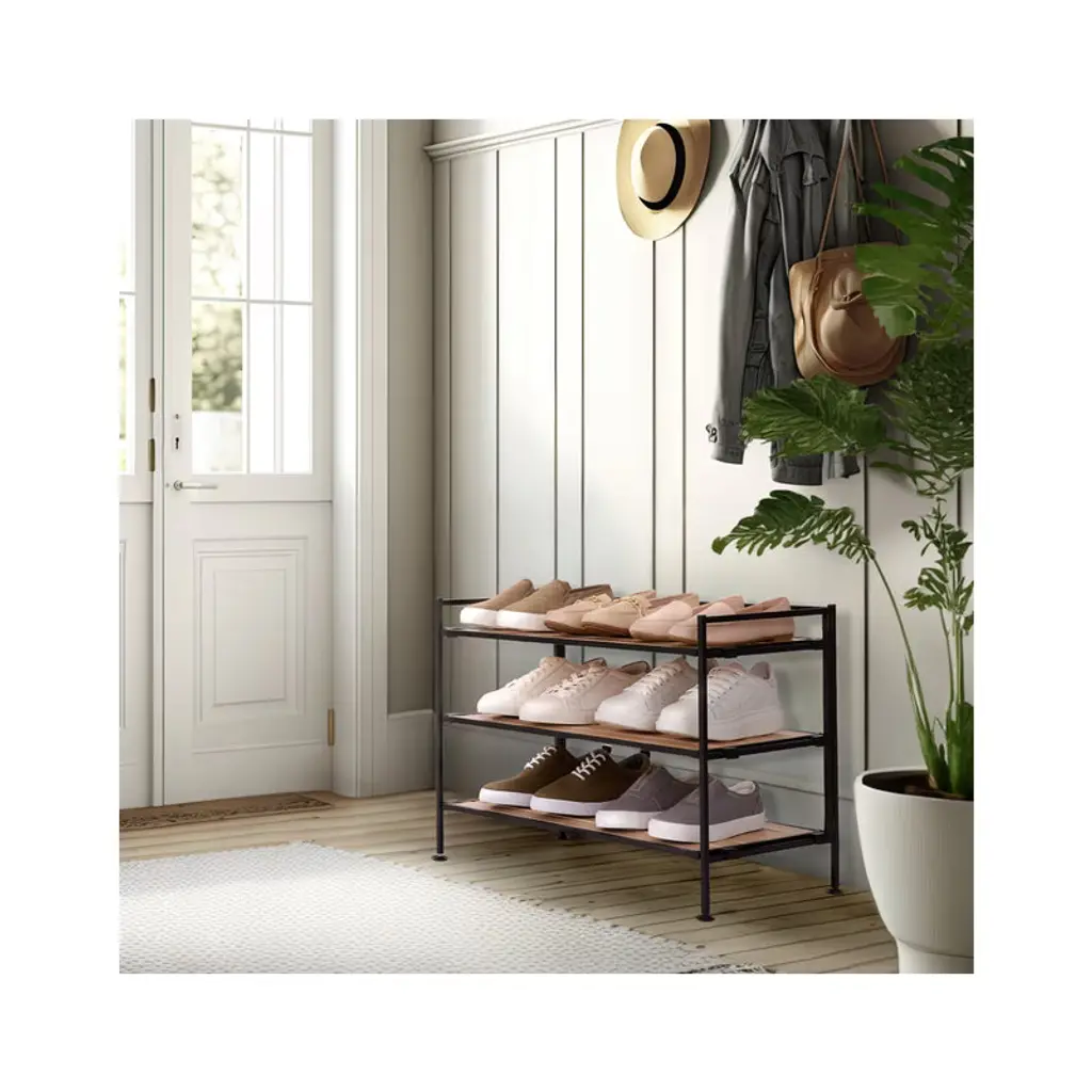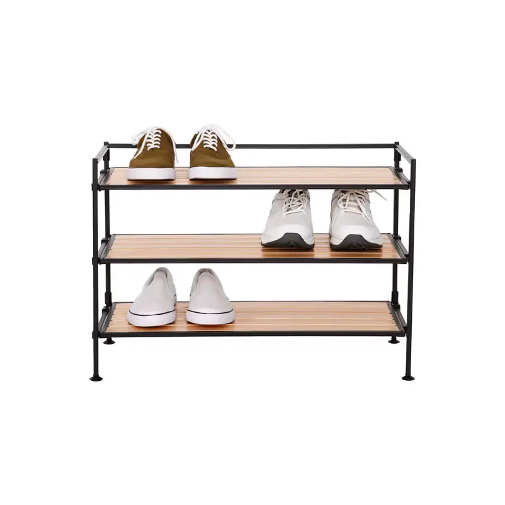 Organize your space with the Seville Classics 3-Tier HOME Resin Slatted Shoe Rack. The modern design is ideal for any room in your home from the bedroom, living room, kitchen, closet, garage, pantry, home office, and door entryway. Sort and store all sizes of sneakers, boots, sandals or heels. The patented design accommodates up to 3 shoes per shelf and 3 low-profile shoes under the rack. Our innovative Interlock design allows you to connect multiple units horizontally for a customizable modular storage system. The steel frame design will support your storage needs with a weight capacity of 90 lbs. total (30 lbs. per shelf).