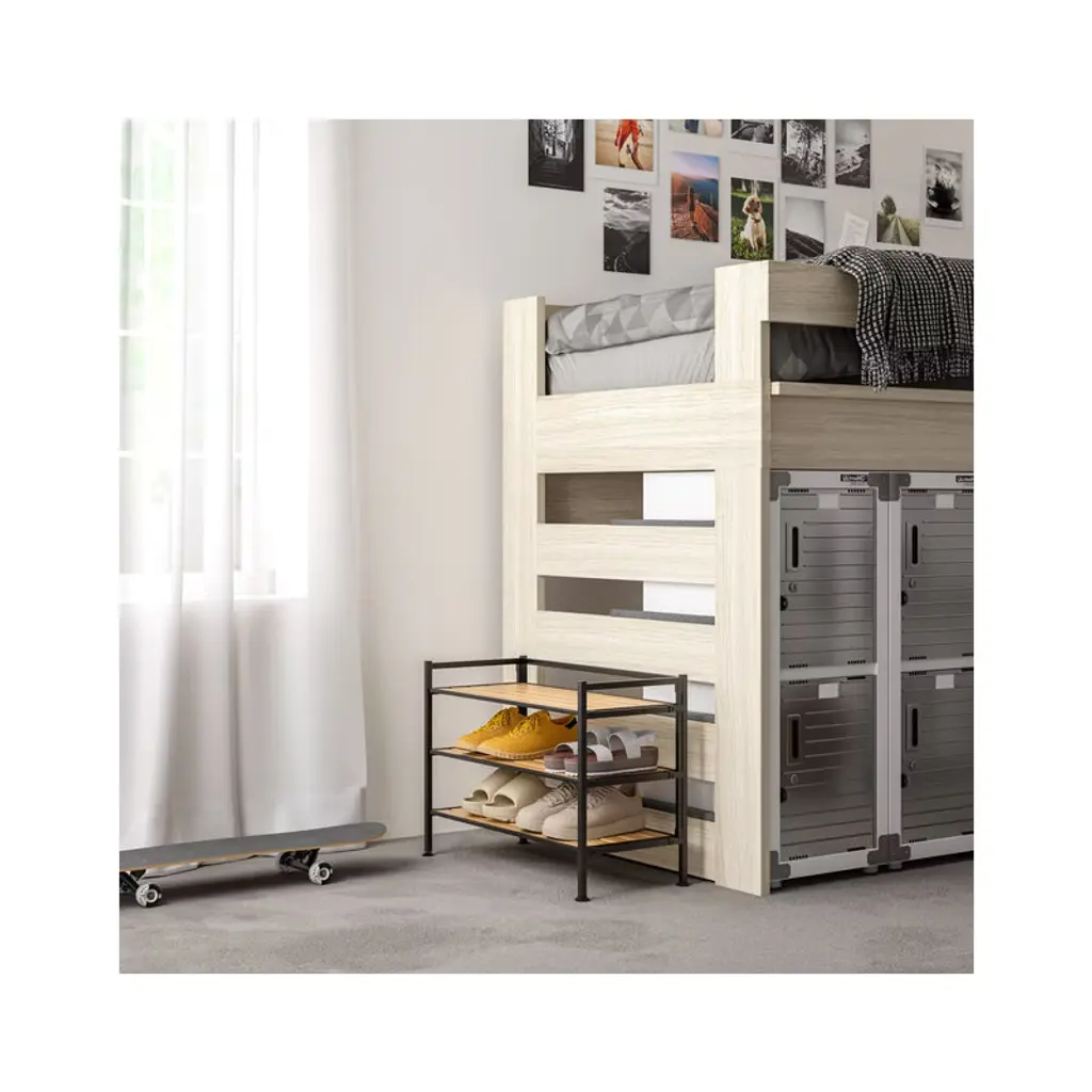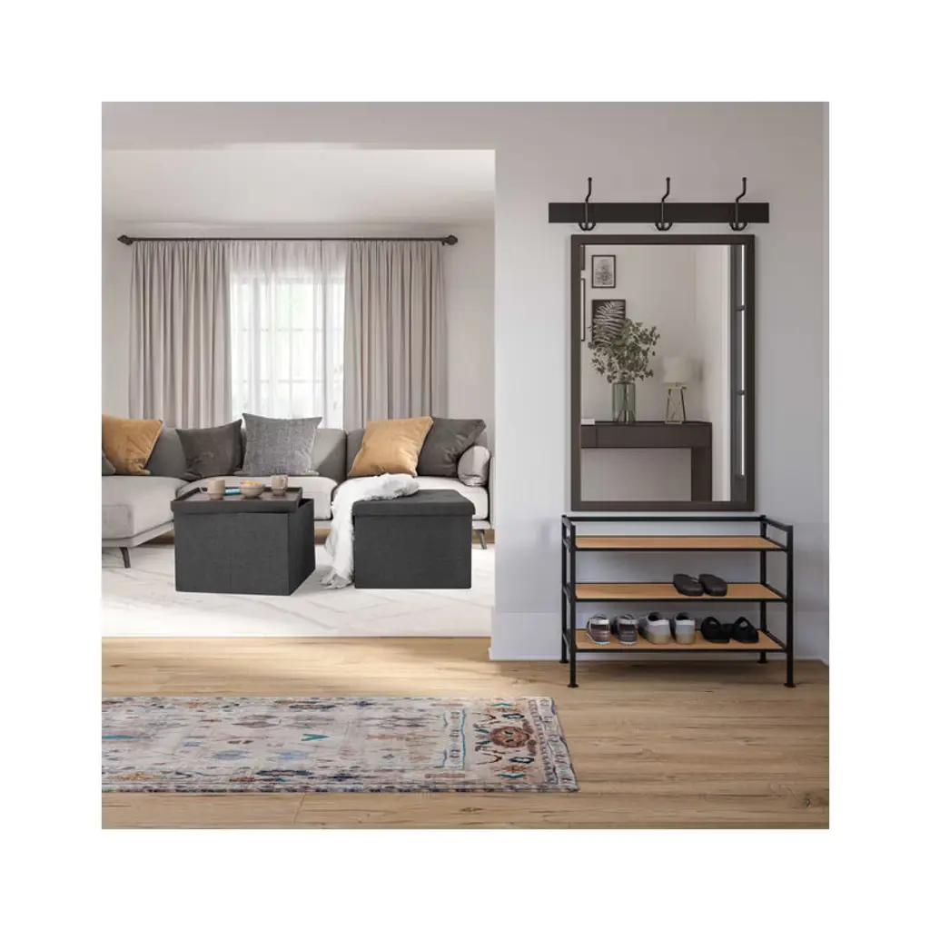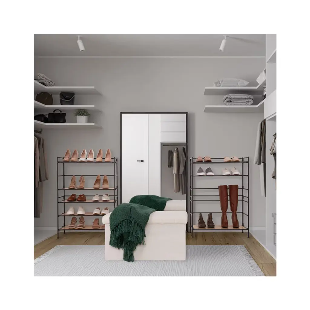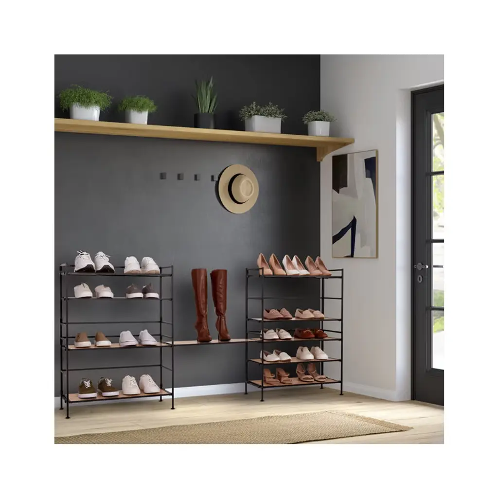 Organize your space with the Seville Classics 3-Tier HOME Resin Slatted Shoe Rack. The modern design is ideal for any room in your home from the bedroom, living room, kitchen, closet, garage, pantry, home office, and door entryway. Sort and store all sizes of sneakers, boots, sandals or heels. The patented design accommodates up to 3 shoes per shelf and 3 low-profile shoes under the rack. Our innovative Interlock design allows you to connect multiple units horizontally for a customizable modular storage system. The steel frame design will support your storage needs with a weight capacity of 90 lbs. total (30 lbs. per shelf).