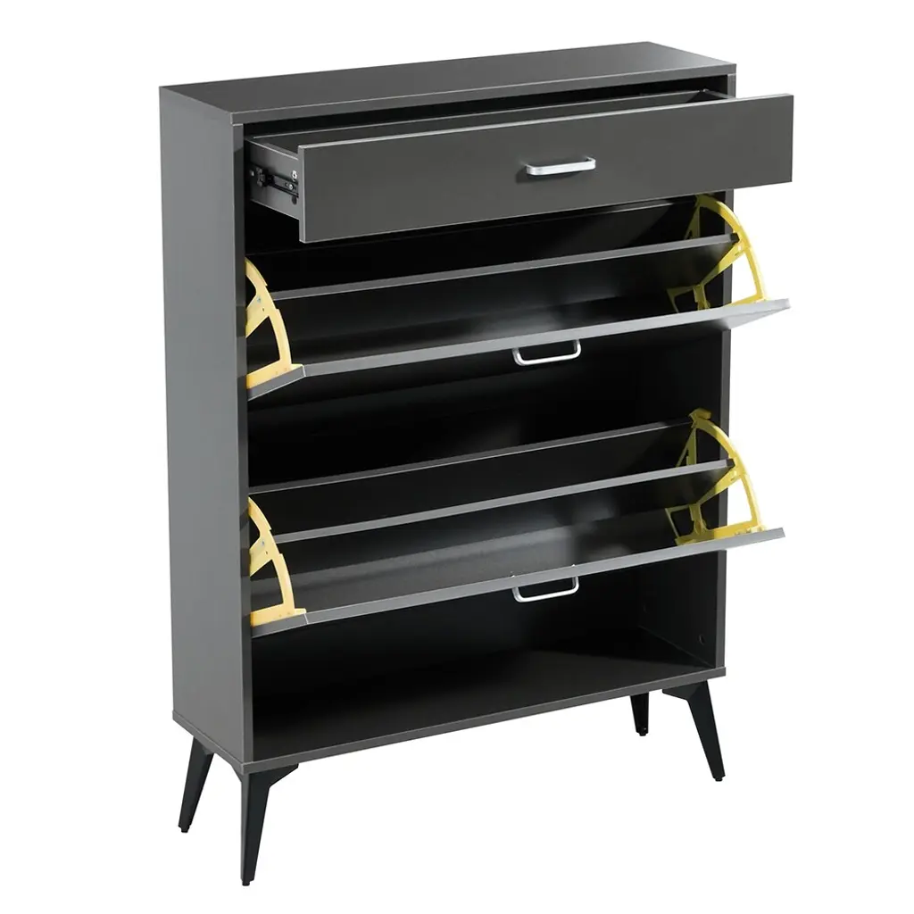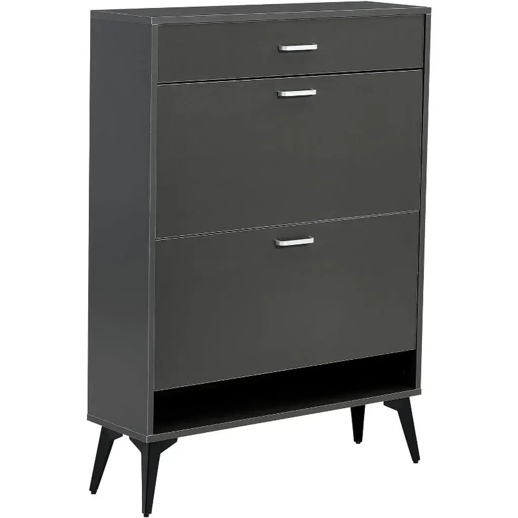 Shoe Cabinet With 2 Flip Drawers Open Shelf Modern Shoe Racks Storage Organizer - Gray